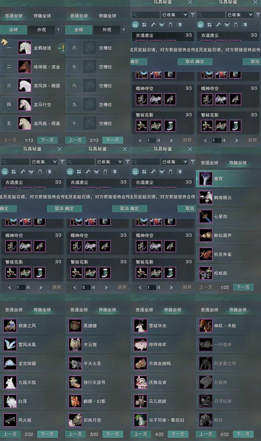 【坐骑】5个[金羁驰逐, 白龙马, 络神骏流金, 鸾凤游栖霞]