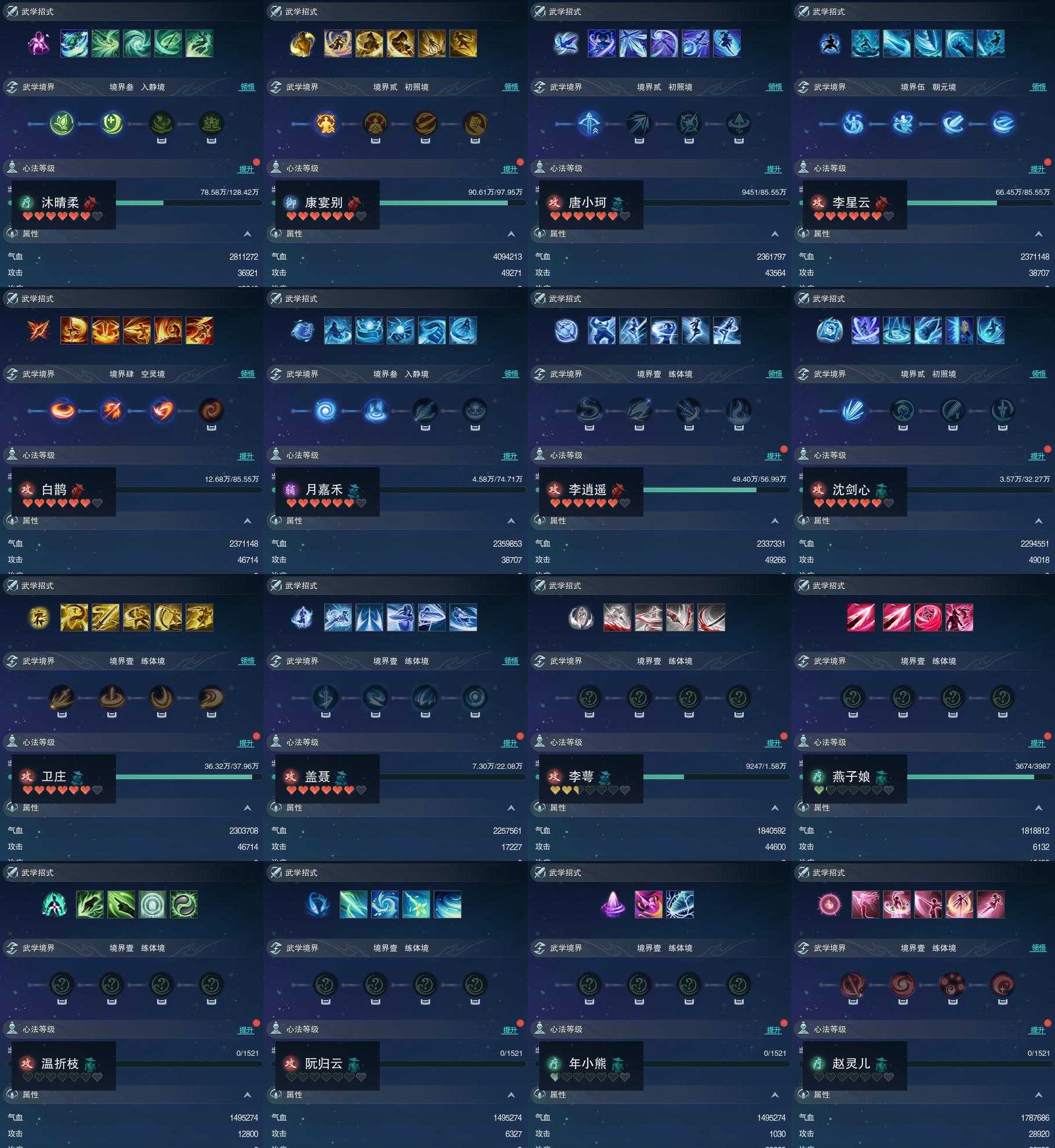 【同伴】沐晴柔86级境界叁,康宴别84级境界贰,唐小珂83级境界贰,李星云83级境界伍,白鹊83级境界肆,月嘉禾82级境界叁,李逍遥80级境界壹,沈剑心77级境界贰,卫庄意77级境界壹,盖聂73级境界壹,李萼意53级境界壹,燕子娘40级境界壹,温折枝1级境界壹,阮归云1级境界壹,年小熊1级境界壹,赵灵儿1级境界壹
