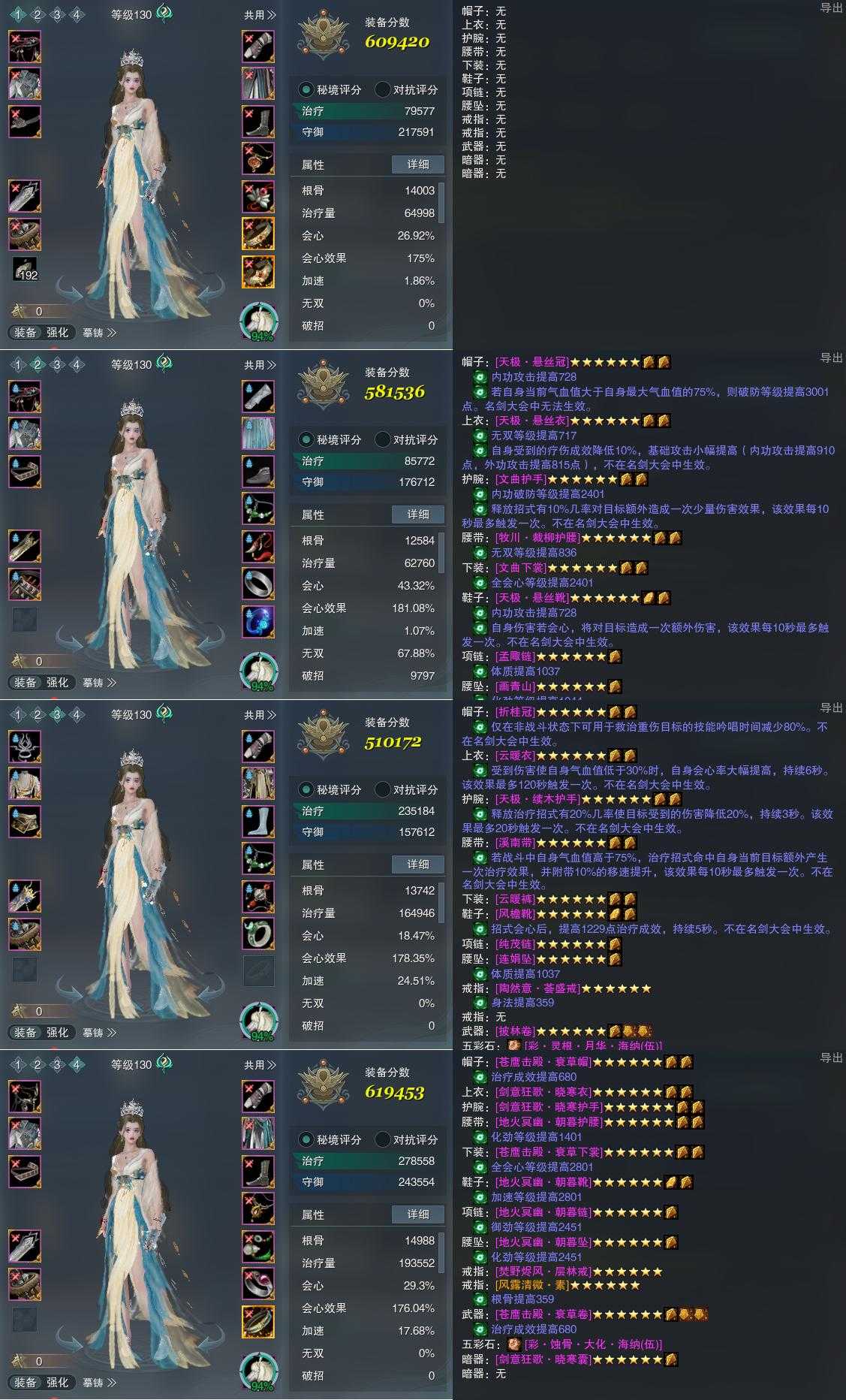 【装备】130级,无方装备一609420,无方PVE581536,灵素PVE510172,灵素PVE619453