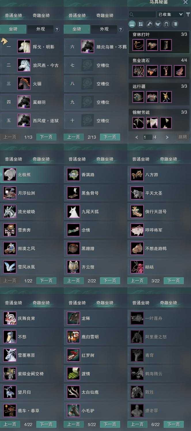 【坐骑】6个[踏炎不羁, 西风瘦逐狱, 挥戈明影, 浪风燕今古]