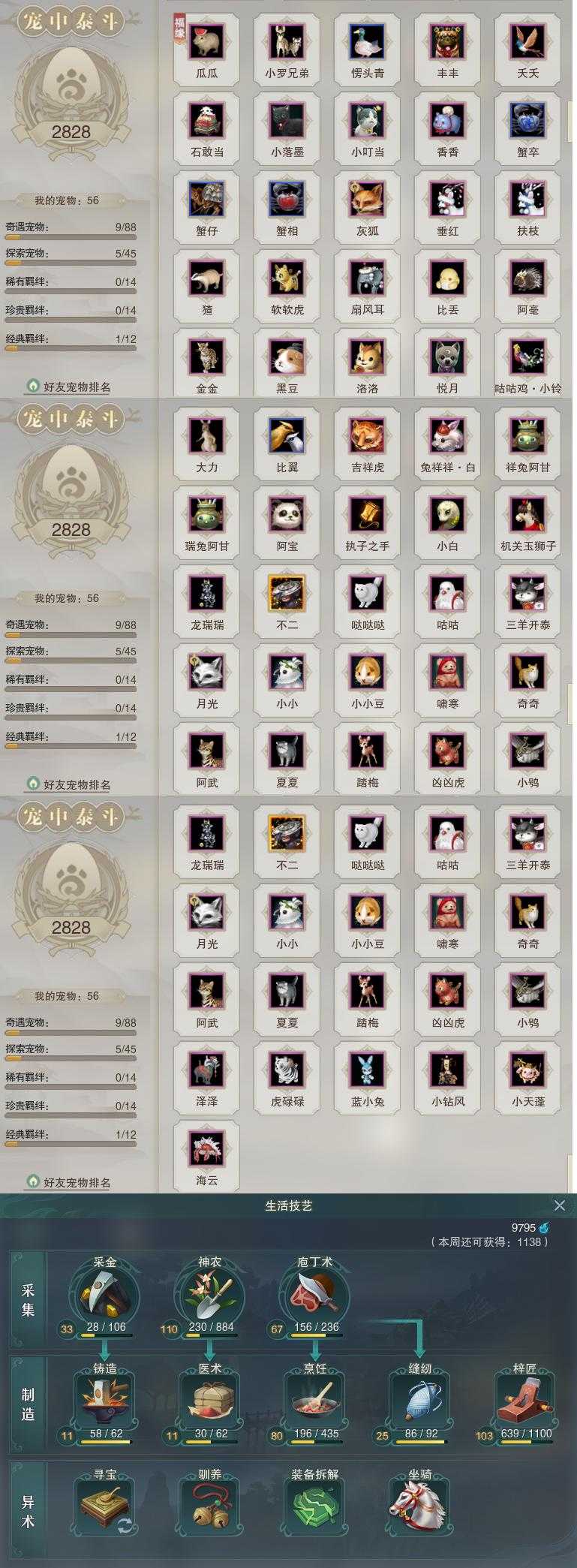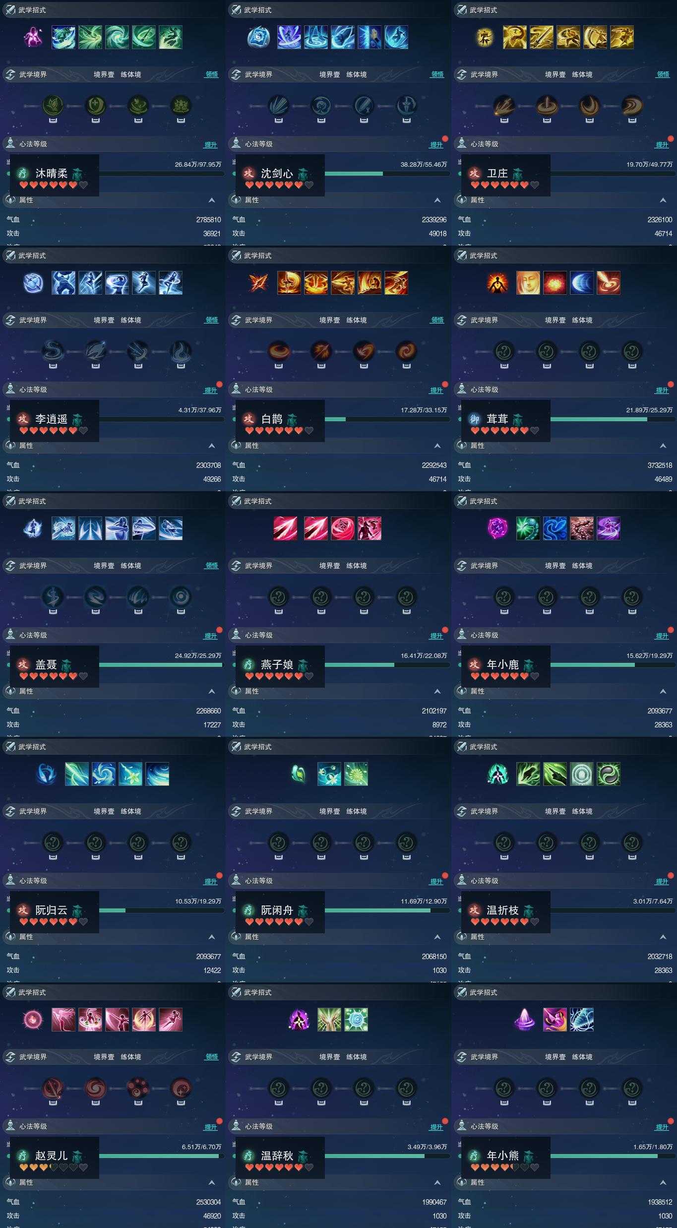 【同伴】沐晴柔84级境界壹,沈剑心81级境界壹,卫庄志79级境界壹,李逍遥77级境界壹,白鹊志76级境界壹,茸茸志74级境界壹,盖聂志74级境界壹,燕子娘73级境界壹,年小鹿72级境界壹,阮归云72级境界壹,阮闲舟69级境界壹,温折枝65级境界壹,赵灵儿64级境界壹,温辞秋60级境界壹,年小熊54级境界壹