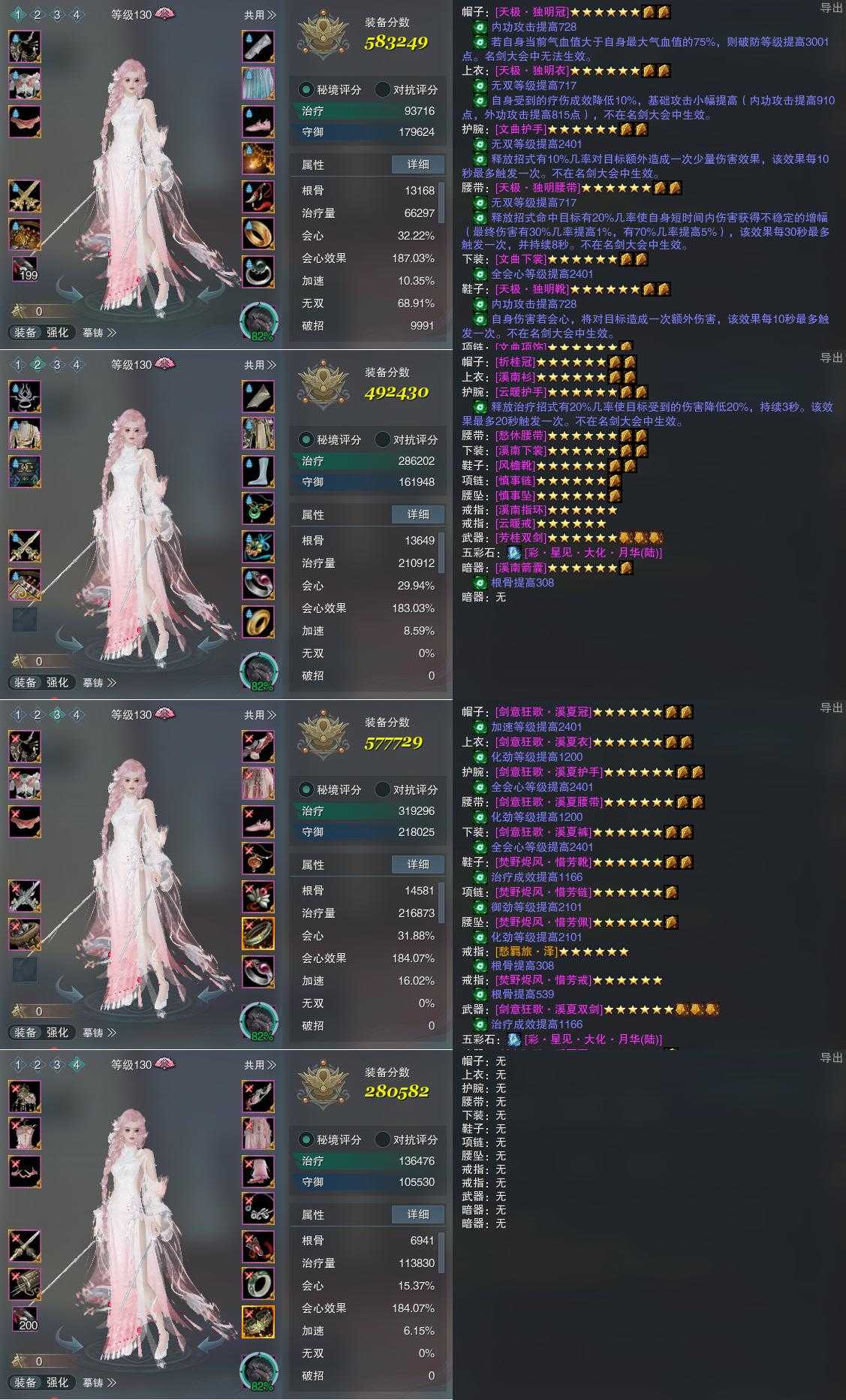 【装备】130级,冰心诀PVE583249,云裳心经装备二492430,云裳心经PVE577729,装备四280582