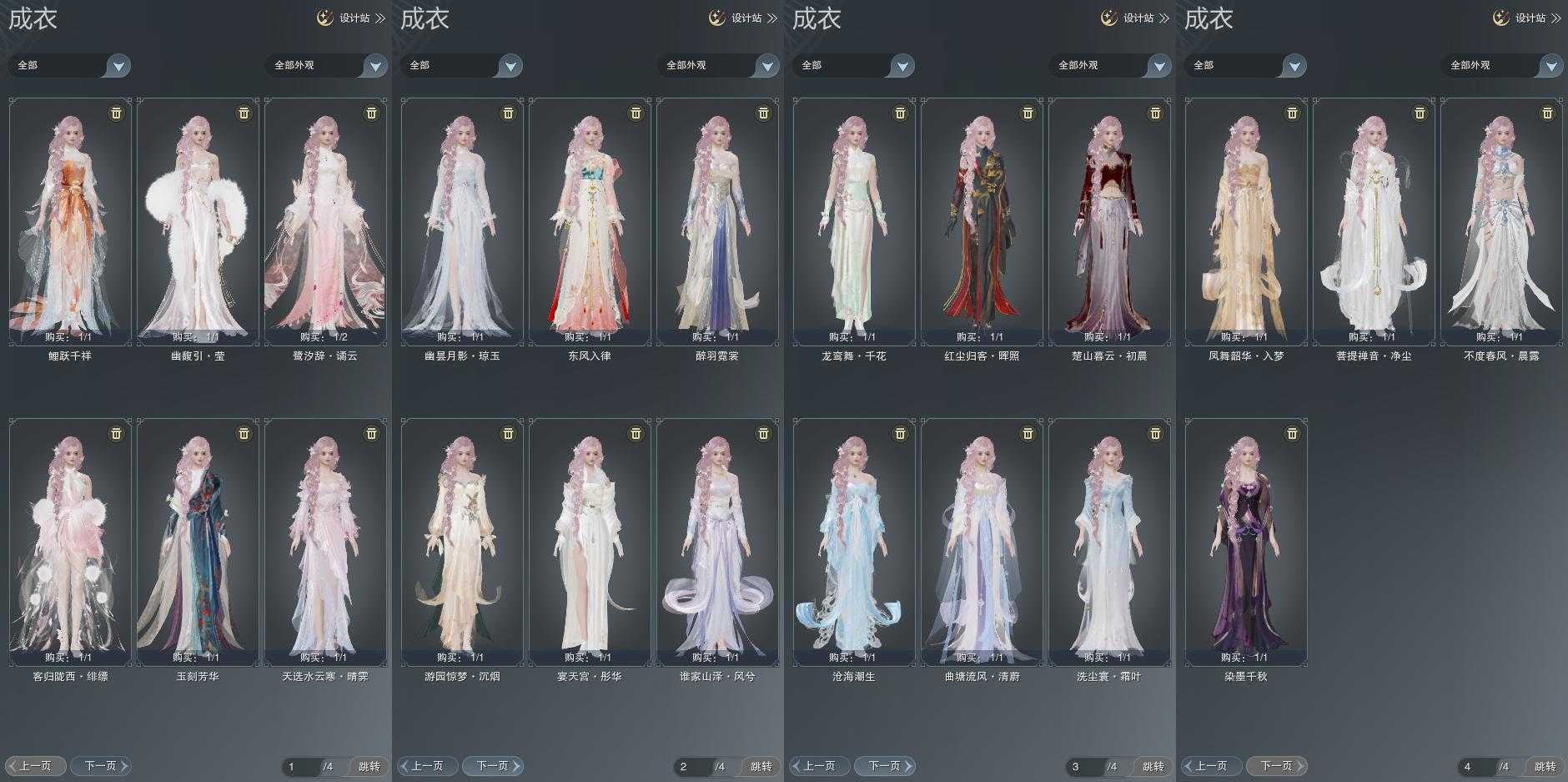 单盒成衣:[白幽昙衣, 除夕盒衣, 白幽馥衣, 粉鹭衣, 粉陇西成衣]