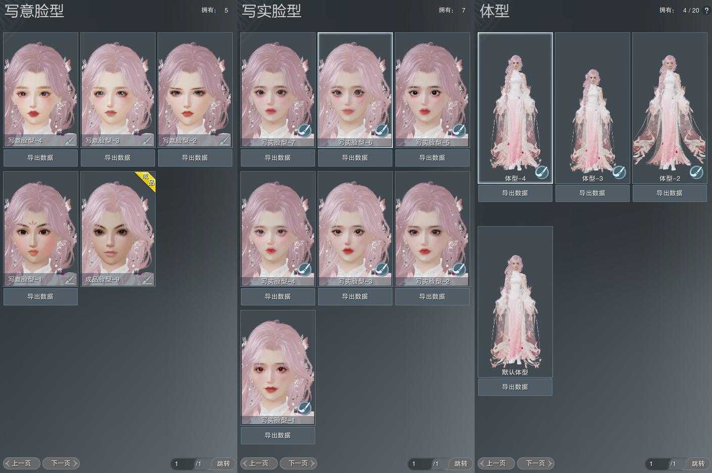 【捏脸】写意脸型5个,写实脸型7个,体型4个