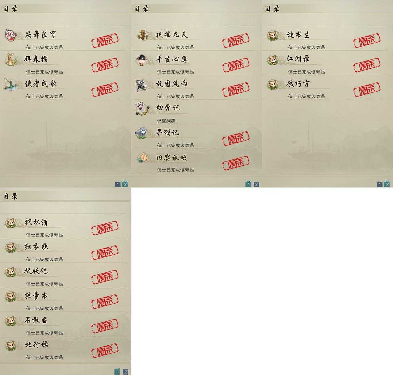 【奇遇】9个[劝学记, 平生心愿, 扶摇九天, 故园风雨, 寻猫记, 庆舞良宵, 旧宴承欢, 侠者成歌, 拜春擂]