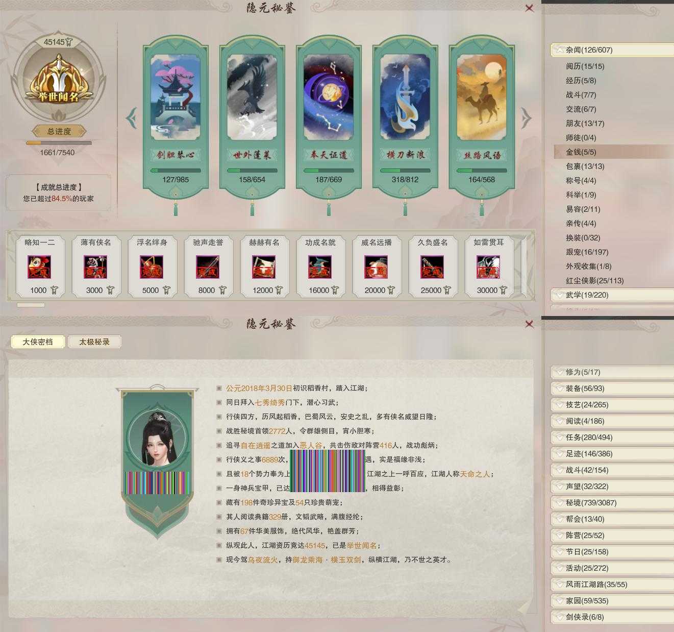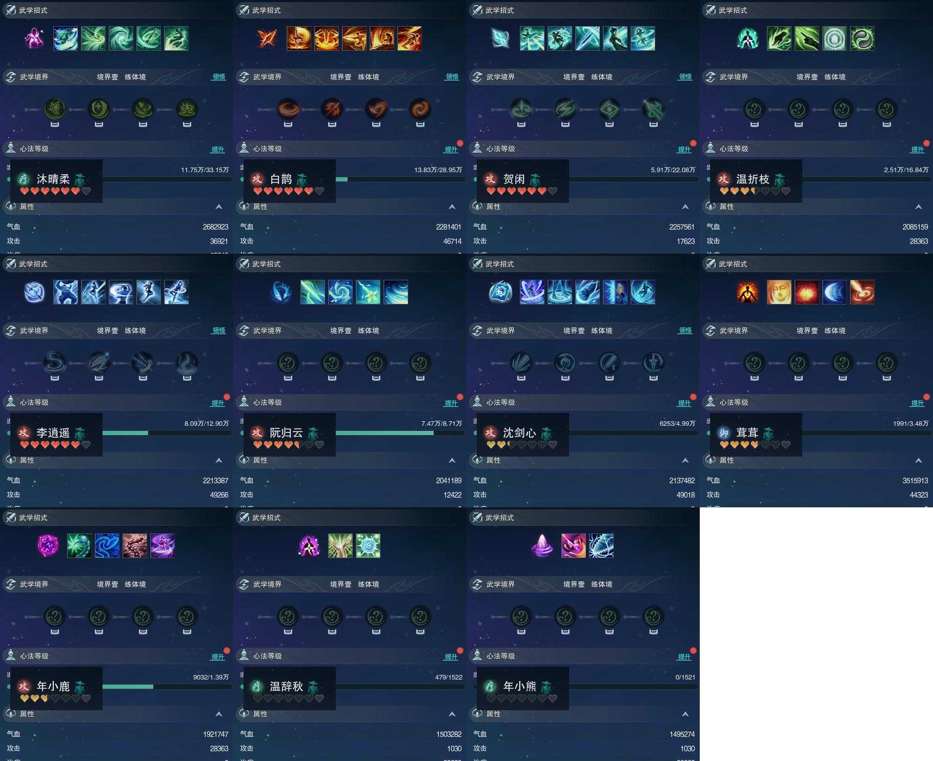 【同伴】沐晴柔76级境界壹,白鹊志75级境界壹,贺闲志73级境界壹,温折枝71级境界壹,李逍遥69级境界壹,阮归云66级境界壹,沈剑心63级境界壹,茸茸志59级境界壹,年小鹿52级境界壹,温辞秋2级境界壹,年小熊1级境界壹