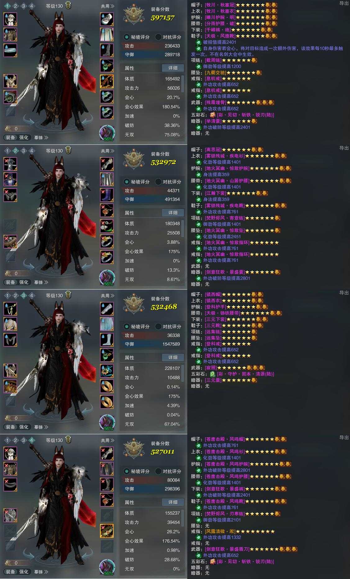 【装备】130级,分山劲PVE597157,铁骨衣装备二532972,铁骨衣PVE532468,苍云装备四527011