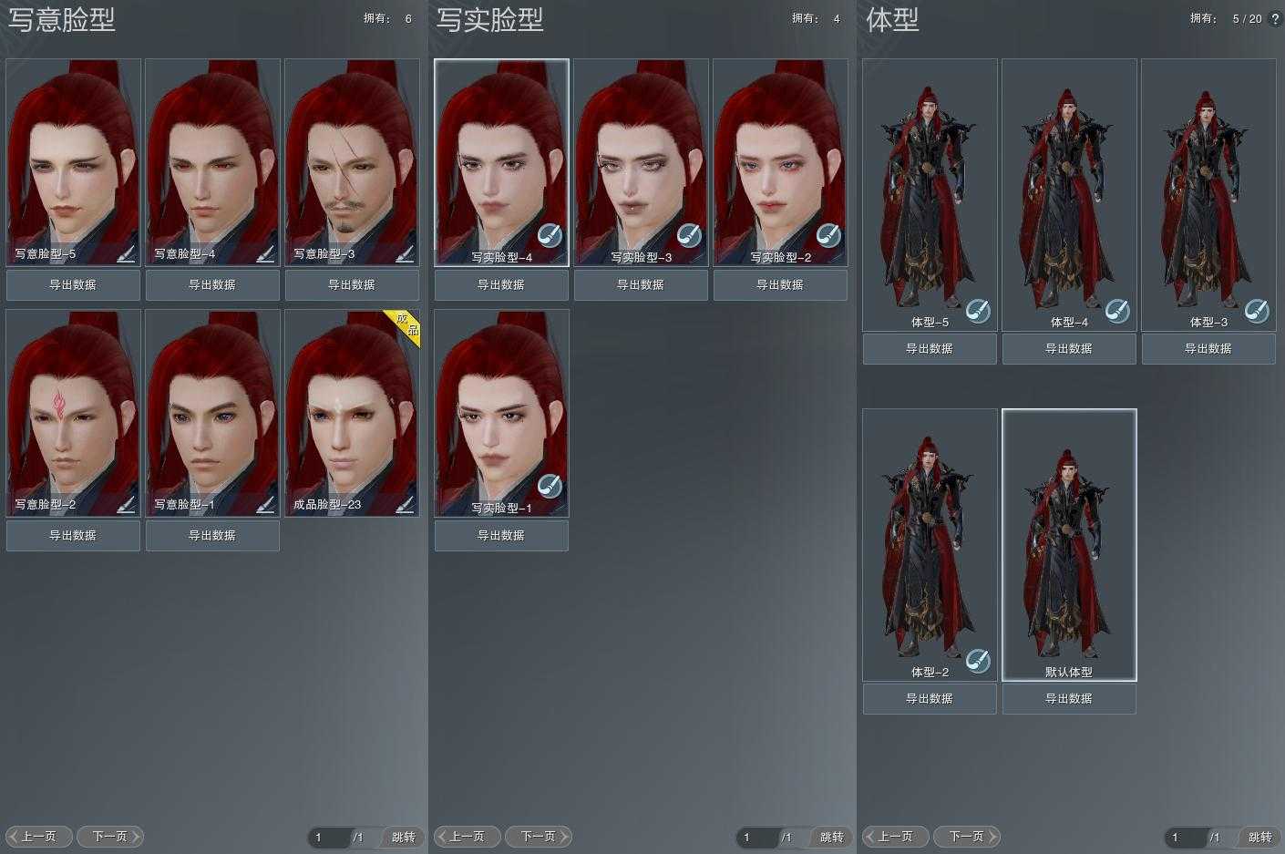 【捏脸】写意脸型6个,写实脸型4个,体型5个
