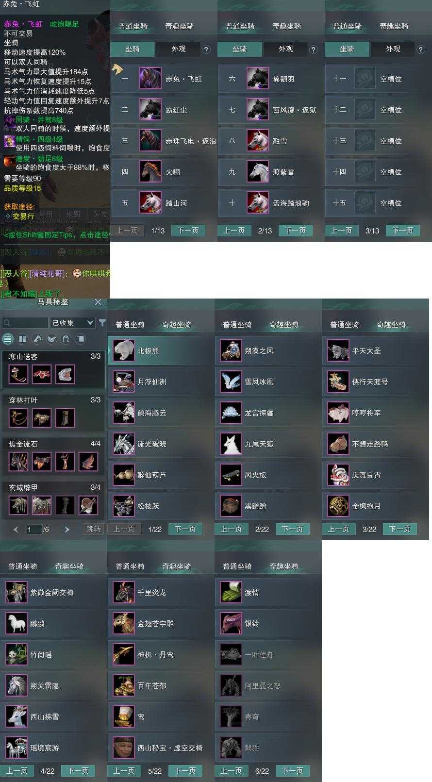 【坐骑】10个[西风瘦逐狱, 赤珠逐浪, 劲足赤兔飞虹, 霸红尘]