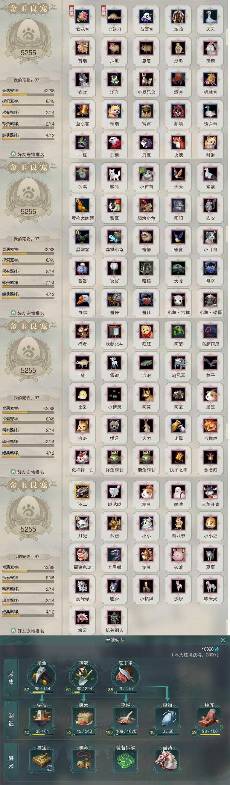 【同伴】唐小珂87级境界伍,康宴别86级境界贰,沐晴柔86级境界壹,月嘉禾82级境界壹,盖聂志82级境界壹,沈剑心81级境界壹,贺闲志81级境界壹,卫庄志81级境界壹,白鹊志80级境界壹,燕子娘76级境界壹,年小鹿74级境界壹,阮归云72级境界壹,赵灵儿71级境界壹,温辞秋70级境界壹,阮闲舟70级境界壹,李逍遥70级境界壹,温折枝69级境界壹,李星云63级境界壹,李萼志61级境界壹,茸茸志59级境界壹,年小熊57级境界壹