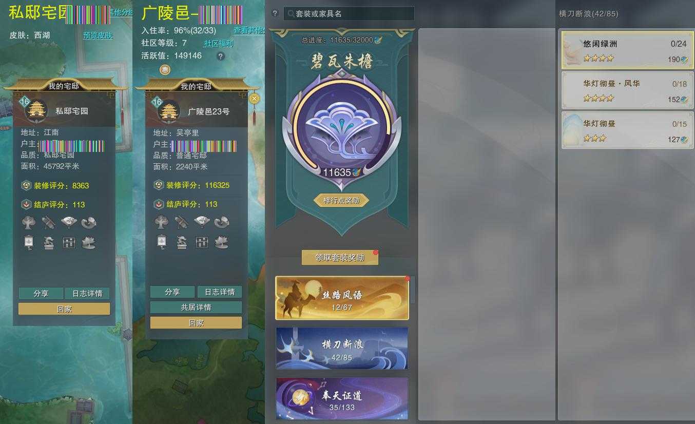 【家园】房屋等级16,社区等级了,私邸宅园,梓行点11635