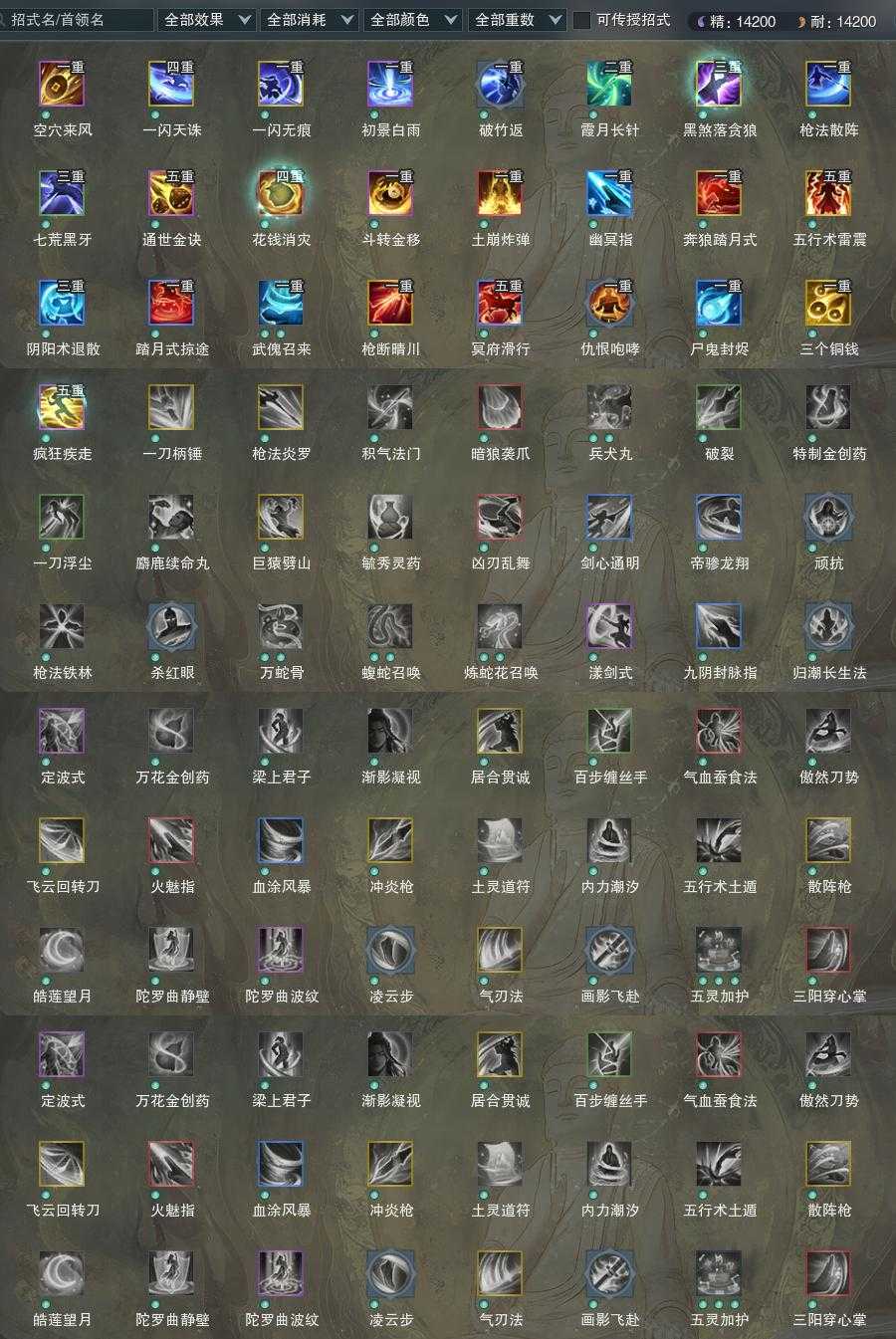 【橙武】(仅本门派)[120小铁*300, 130小铁*232, 奇遇书照影*1, 110玄晶*1, 95玄晶*1, 70玄晶*1, 110小铁*499, 100小铁*210, 95小铁*438, 90小铁*277, 80小铁*477, 70小铁*284, 110CW白狼河北, 110CW四面边声, 95CW朱轩怀雀, 90CW血云]