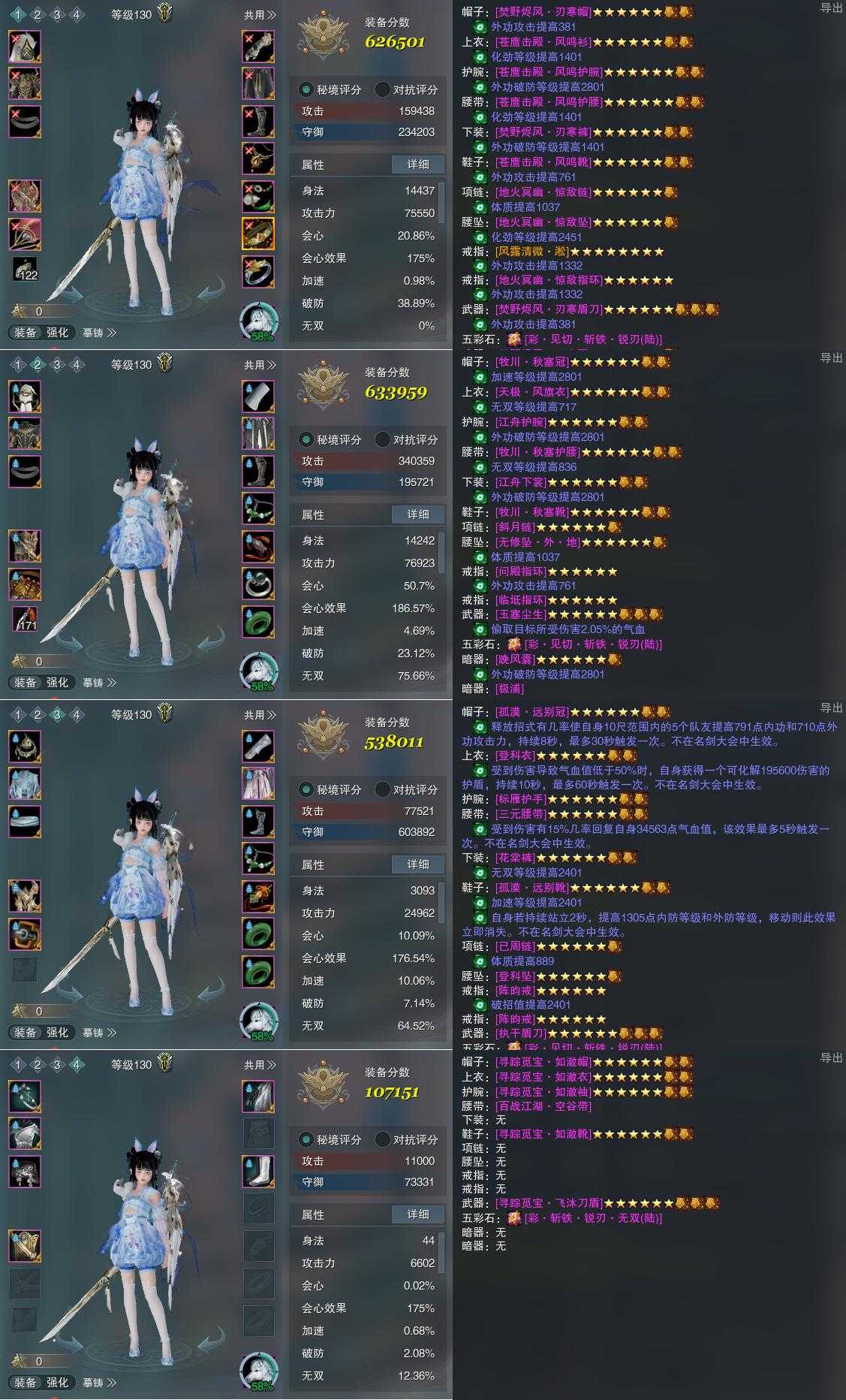 【装备】130级,分山劲PVP626501,分山劲PVE633959,铁骨衣PVE538011,装备四107151