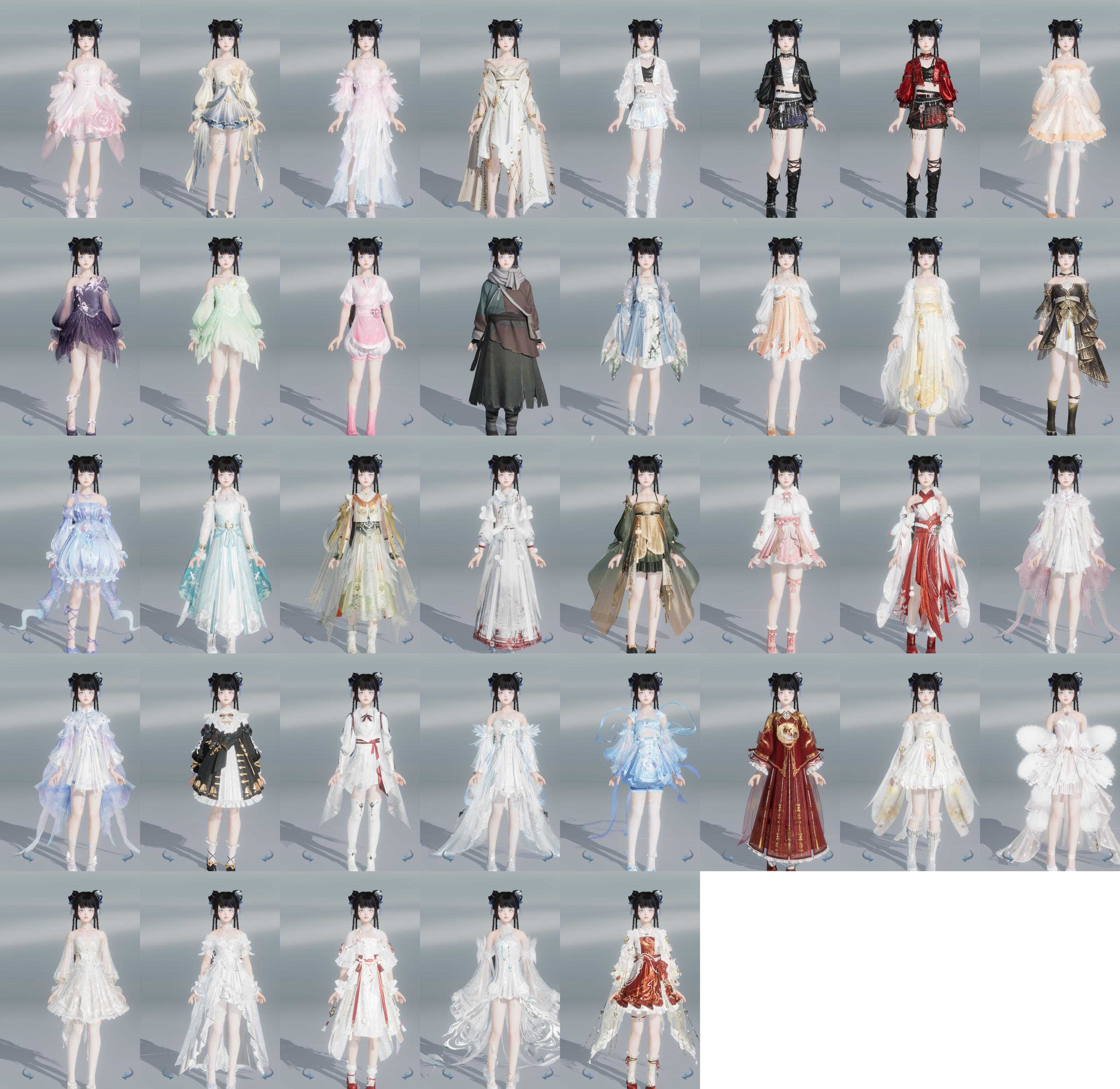 复刻:[复刻粉玫瑰, 复刻黄兰庭, 复刻粉水云, 白机车, 黑机车, 红机车, 黄二公主, 紫不欺, 复刻绿不欺, 夜斩白孤云, 五期福袋成衣, 河汉绯玉, 复刻黄绸云, 折花留芳坠绯]
