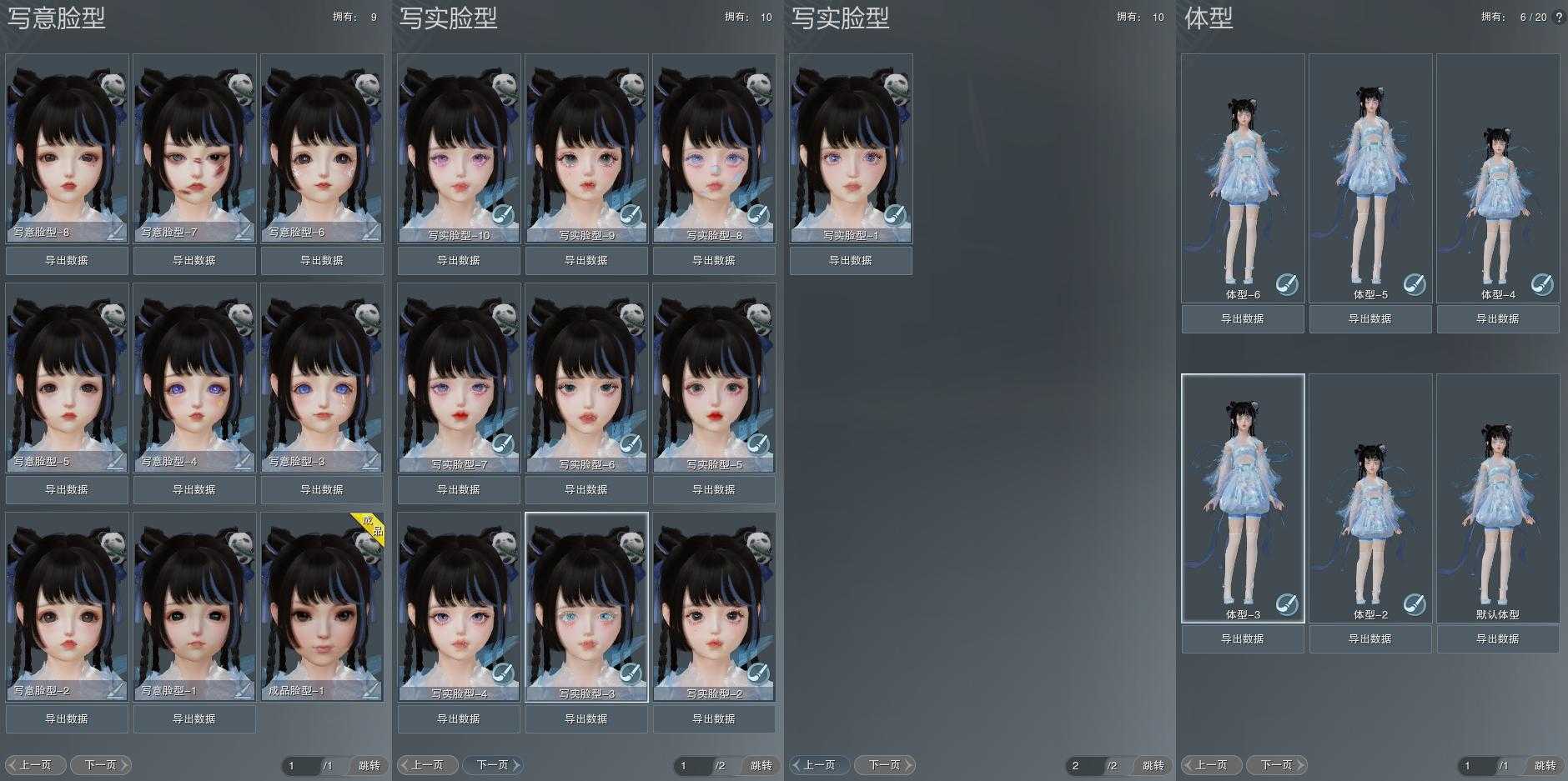 【捏脸】写意脸型9个,写实脸型10个,体型6个