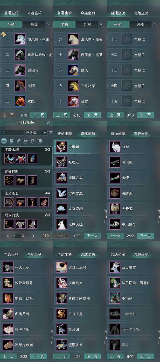 【坐骑】10个[西风瘦逐狱, 飞毛将军, 翻羽抹云驹赶月, 浪风燕今古]
