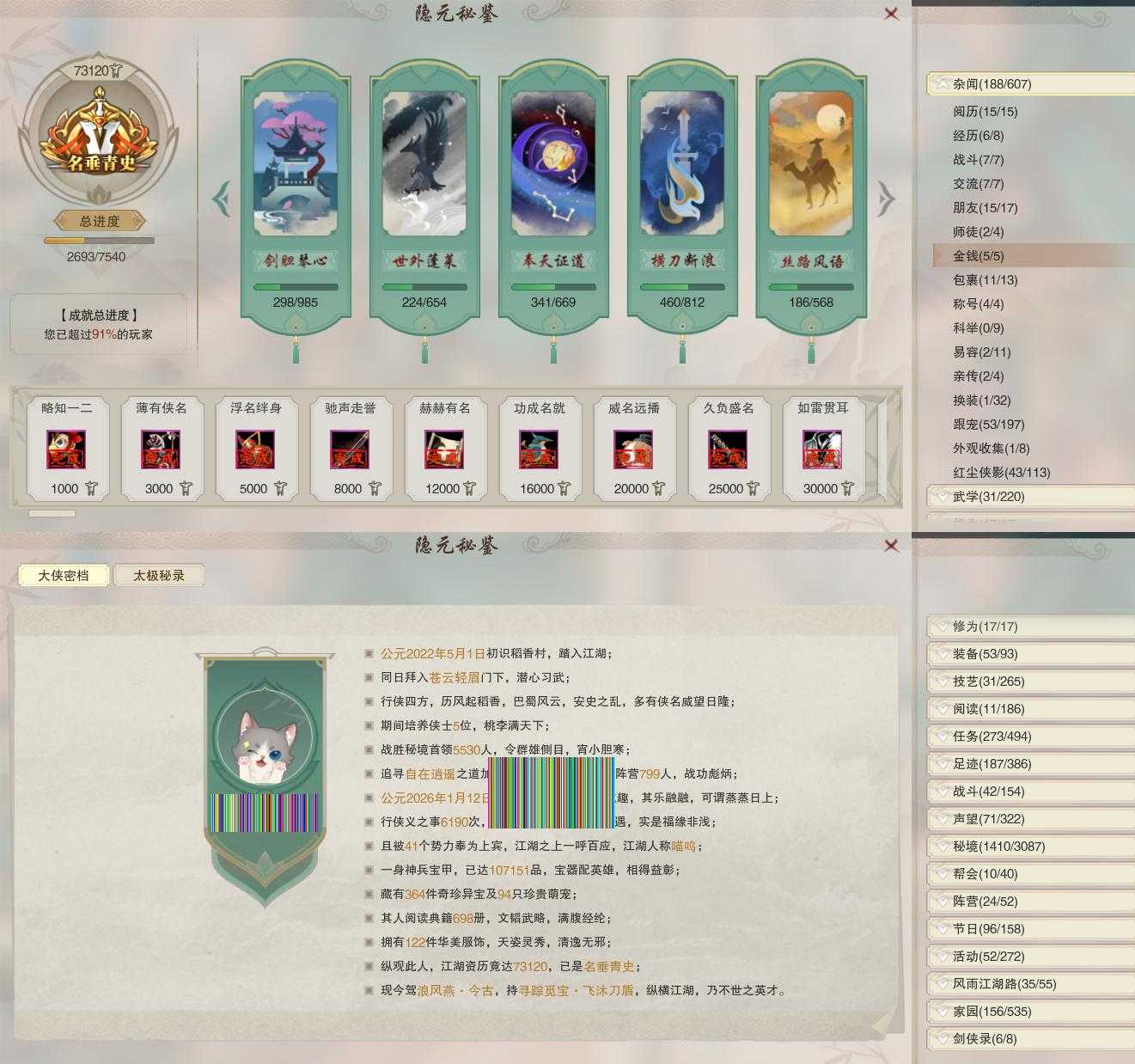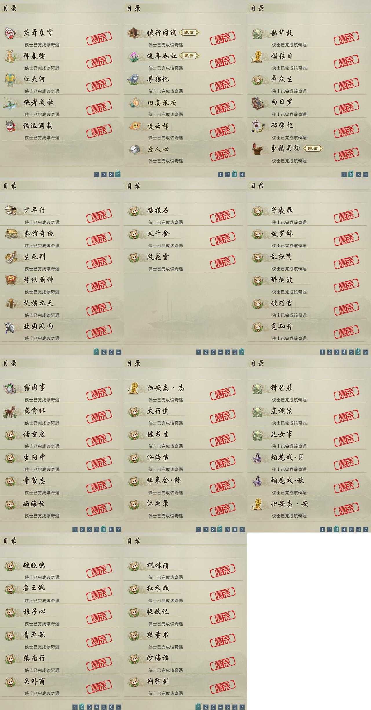 【奇遇】23个[白日梦, 劝学记, 惜往日, 韶华故, 争铸吴钩, 少年行, 扶摇九天, 故园风雨, 流年如虹, 舞众生, 侠行囧途, 寻猫记, 茶馆奇缘, 庆舞良宵, 生死判, 凌云梯, 炼狱厨神, 度人心, 旧宴承欢, 泛天河, 侠者成歌, 拜春擂, 福运满载]