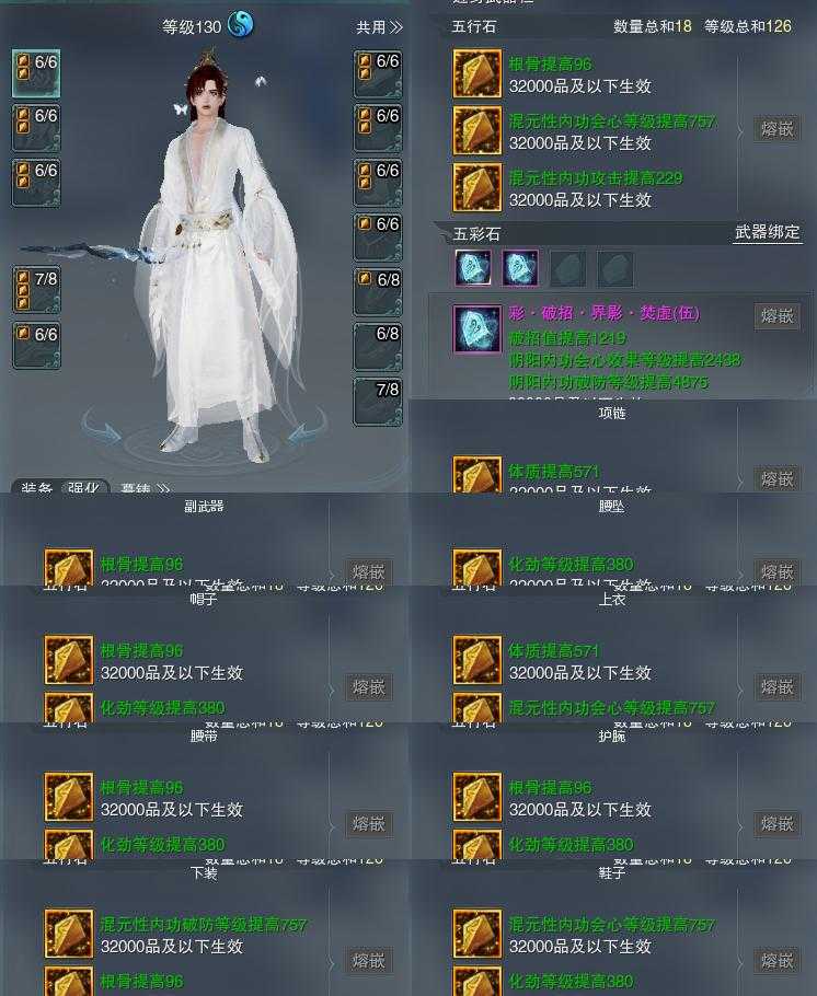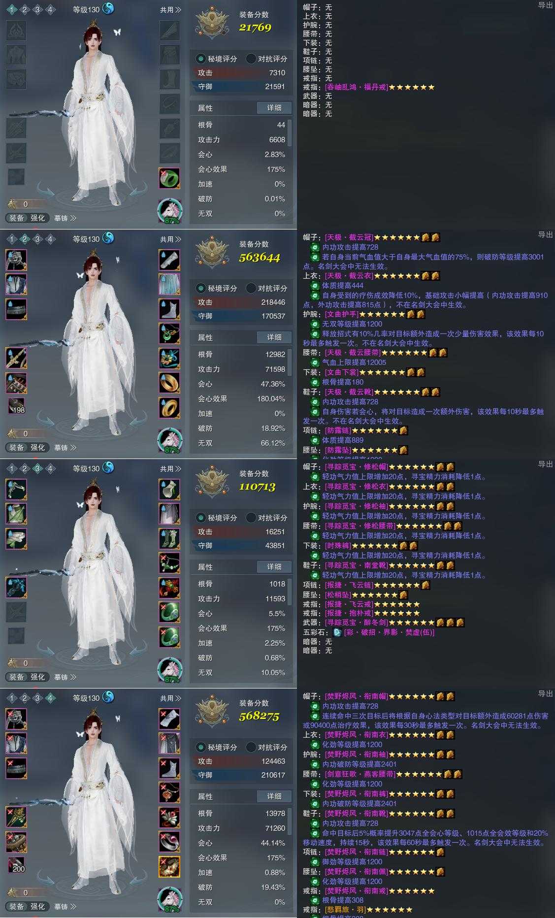 【装备】130级,装备一21769,紫霞功PVE563644,装备三110713,紫霞功PVP568275