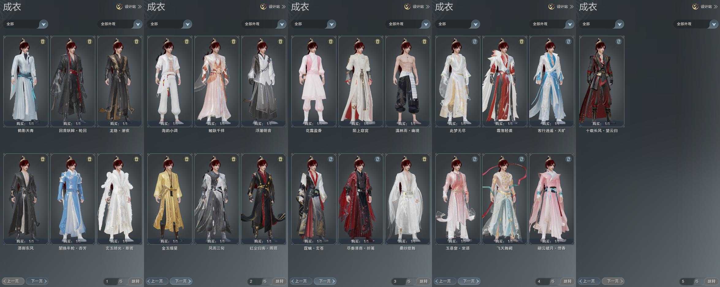 限时限量:[海韵小调, 霆螭玄苍, 烟花套, 玉悬窗棠语, 客行逍遥天旷, 十三周年成衣, 云闲归鹤]