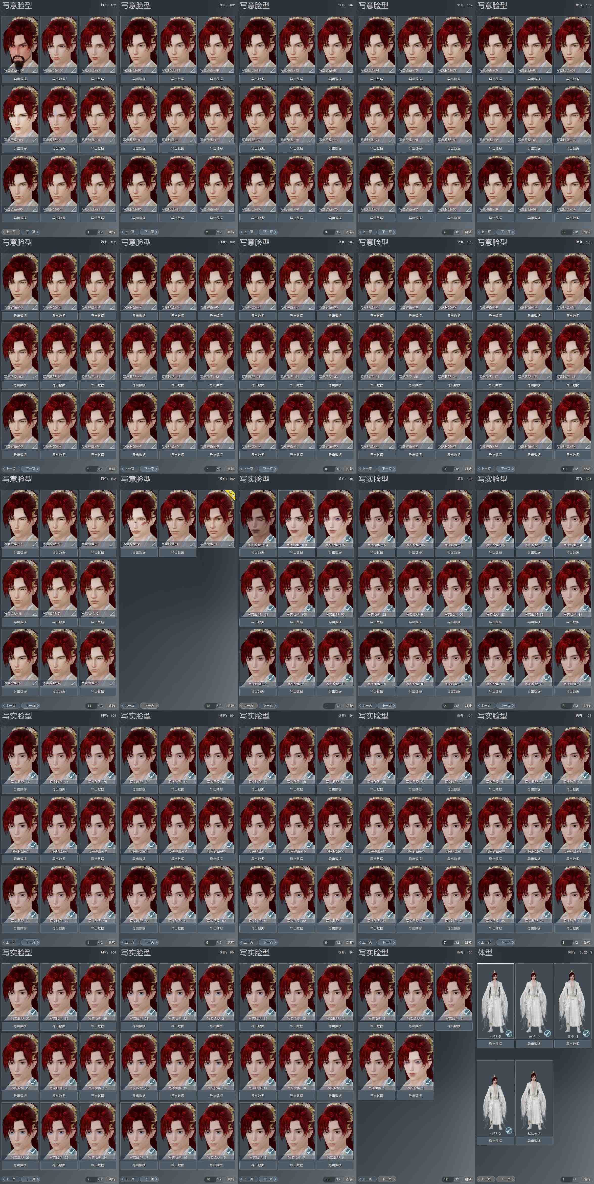 【捏脸】写意脸型102个,写实脸型104个,体型5个