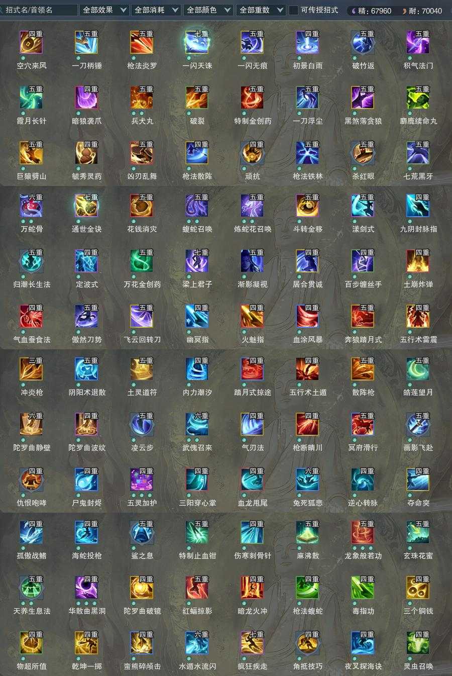【橙武】(仅本门派)[120小铁*37, 130小铁*8, 90玄晶*1, 70玄晶*2, 110小铁*200, 100小铁*191, 95小铁*338, 90小铁*226, 80小铁*211, 70小铁*236, 120CW苍冥游, 100CW霜影玄玑, 100CW瀚海长风, 95CW周流星位, 门派特效腾空]
