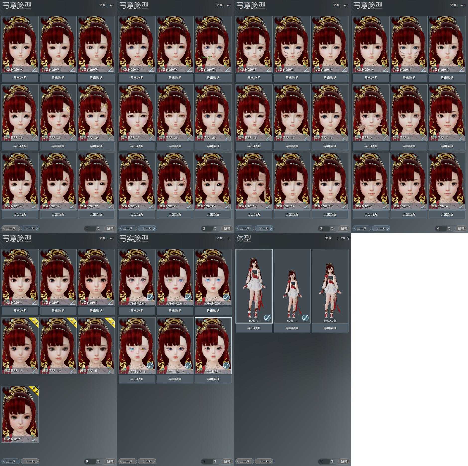 【捏脸】写意脸型43个,写实脸型6个,体型3个