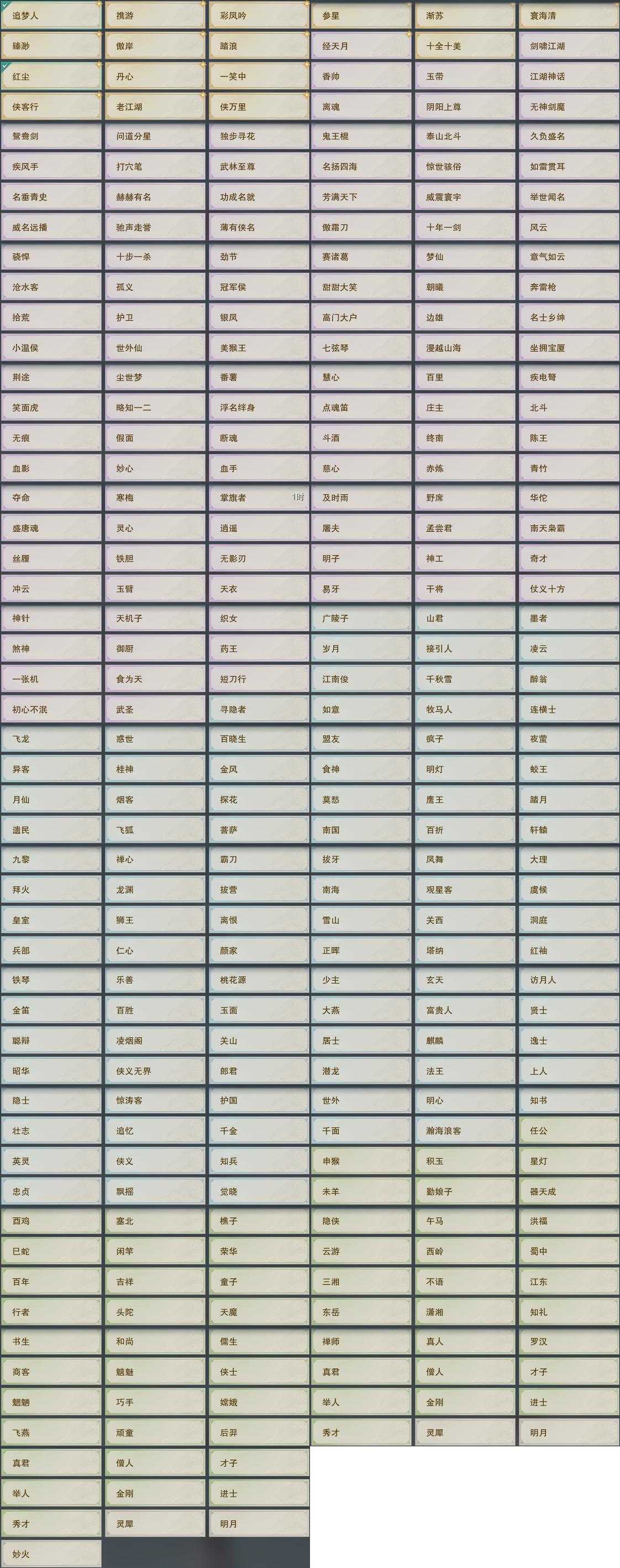 【奇珍】28个[枫林酒, 红衣歌, 归乡路, 胜负局, 孩童书, 捉妖记, 至尊宝, 石敢当, 稚子心, 青草歌]
