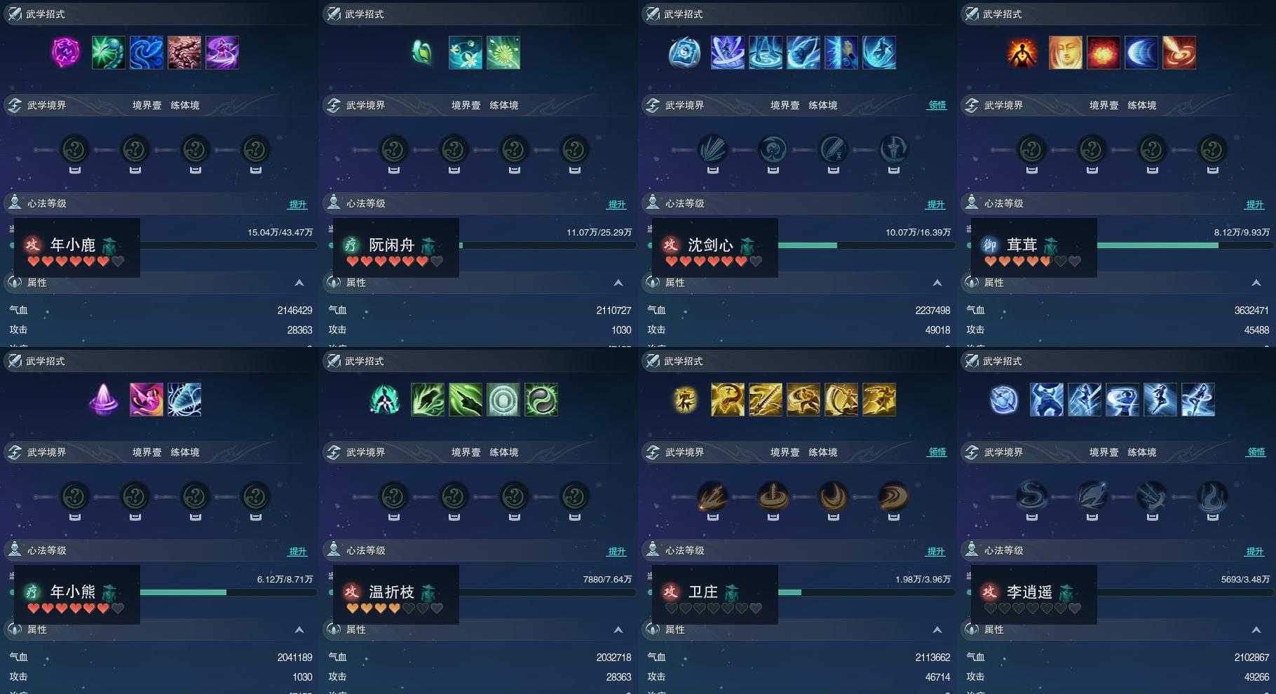 【同伴】年小鹿78级境界壹,阮闲舟74级境界壹,沈剑心72级境界壹,茸茸志67级境界壹,年小熊66级境界壹,温折枝65级境界壹,卫庄志60级境界壹,李逍遥59级境界壹
