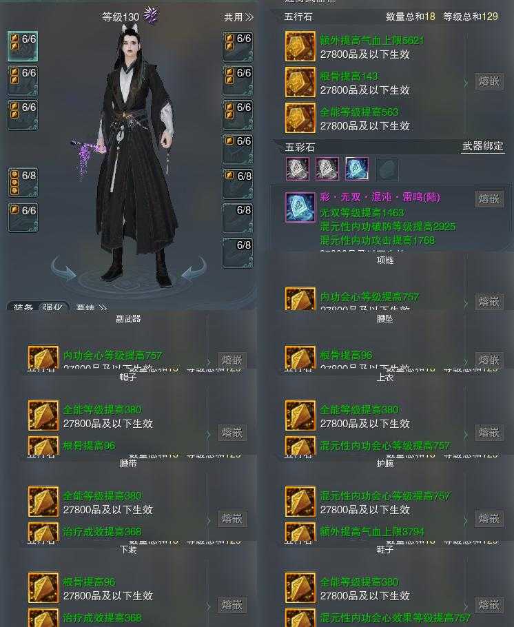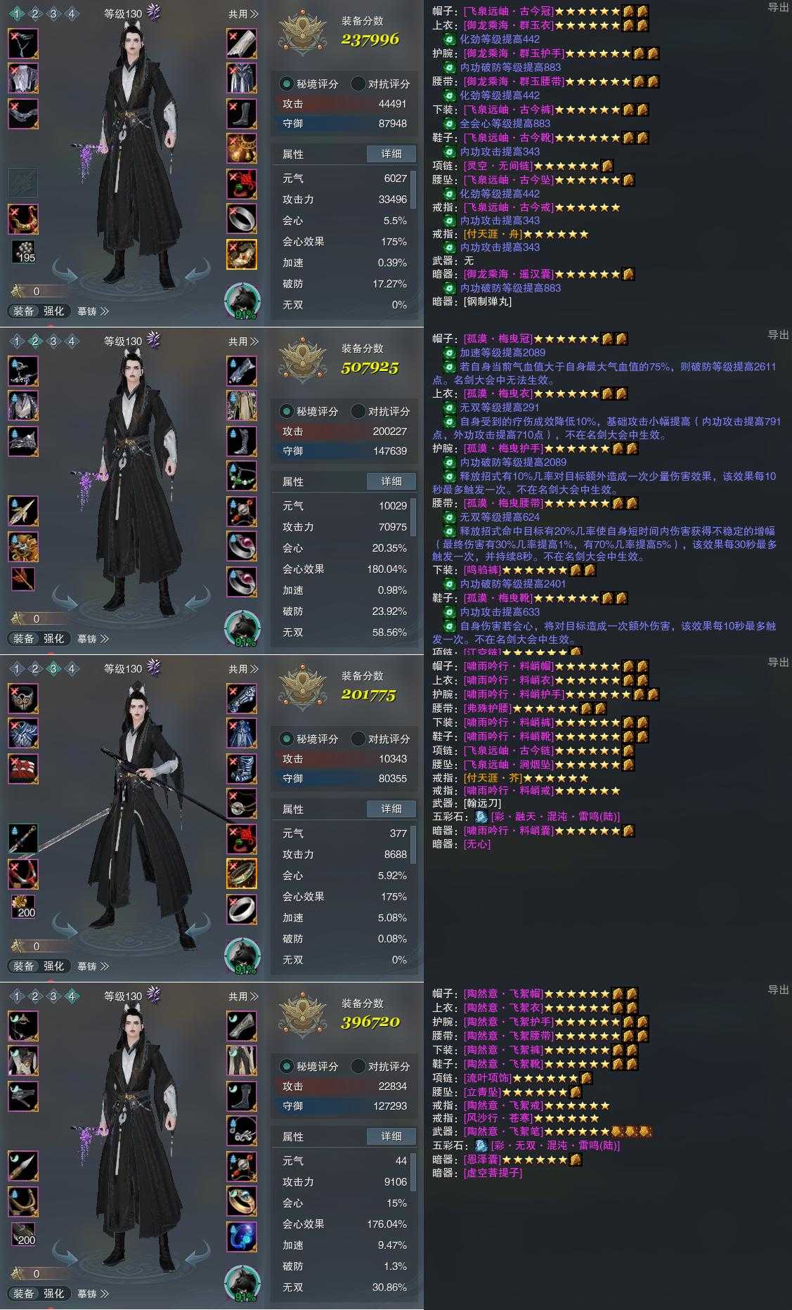 【装备】130级,装备一237996,花间游PVE507925,装备三201775,离经易道PVP396720