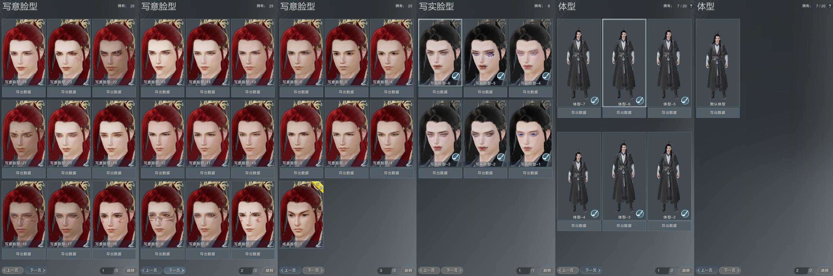 【捏脸】写意脸型25个,写实脸型6个,体型7个