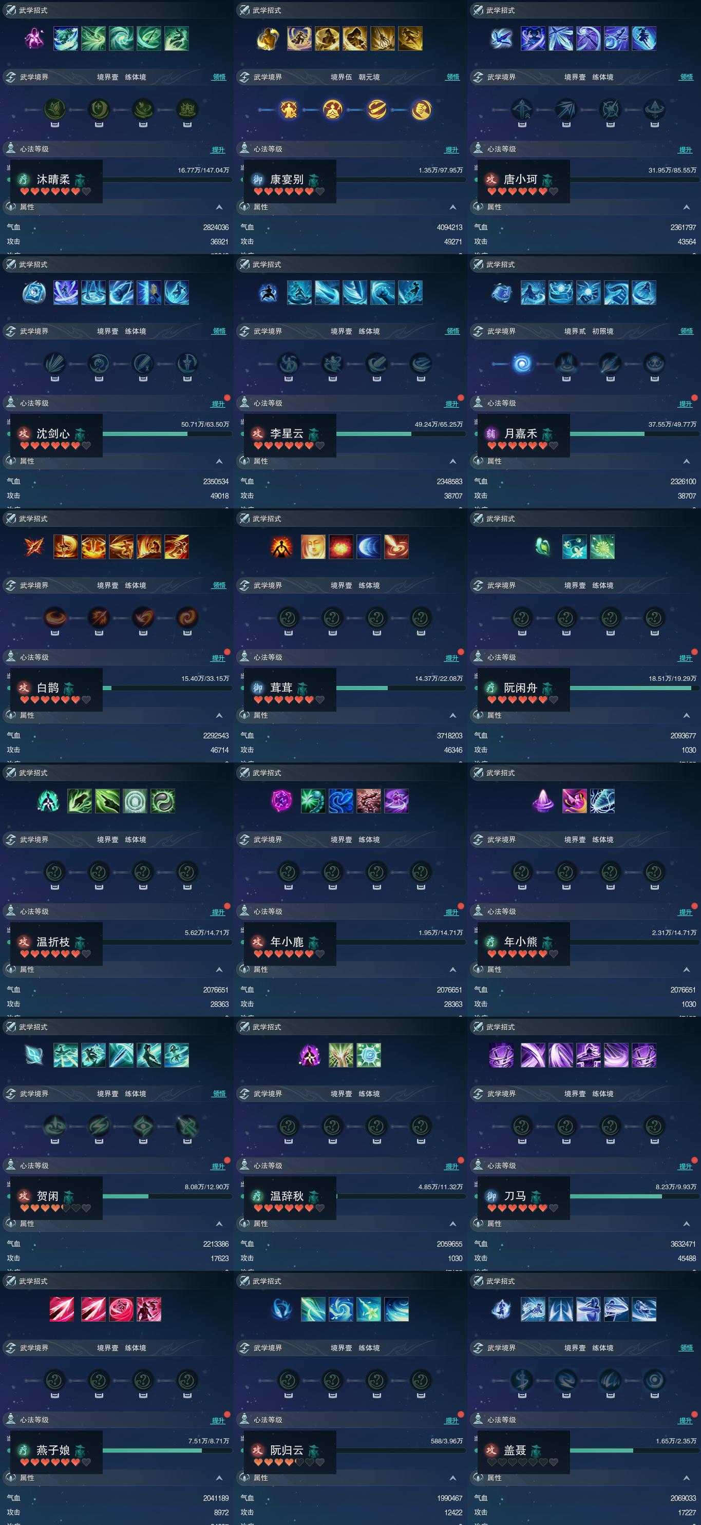 【同伴】沐晴柔87级境界壹,康宴别84级境界伍,唐小珂83级境界壹,沈剑心82级境界壹,李星云81级境界壹,月嘉禾79级境界贰,白鹊志76级境界壹,茸茸志73级境界壹,阮闲舟72级境界壹,温折枝70级境界壹,年小鹿70级境界壹,年小熊70级境界壹,贺闲志69级境界壹,温辞秋68级境界壹,刀马志67级境界壹,燕子娘66级境界壹,阮归云60级境界壹,盖聂志56级境界壹