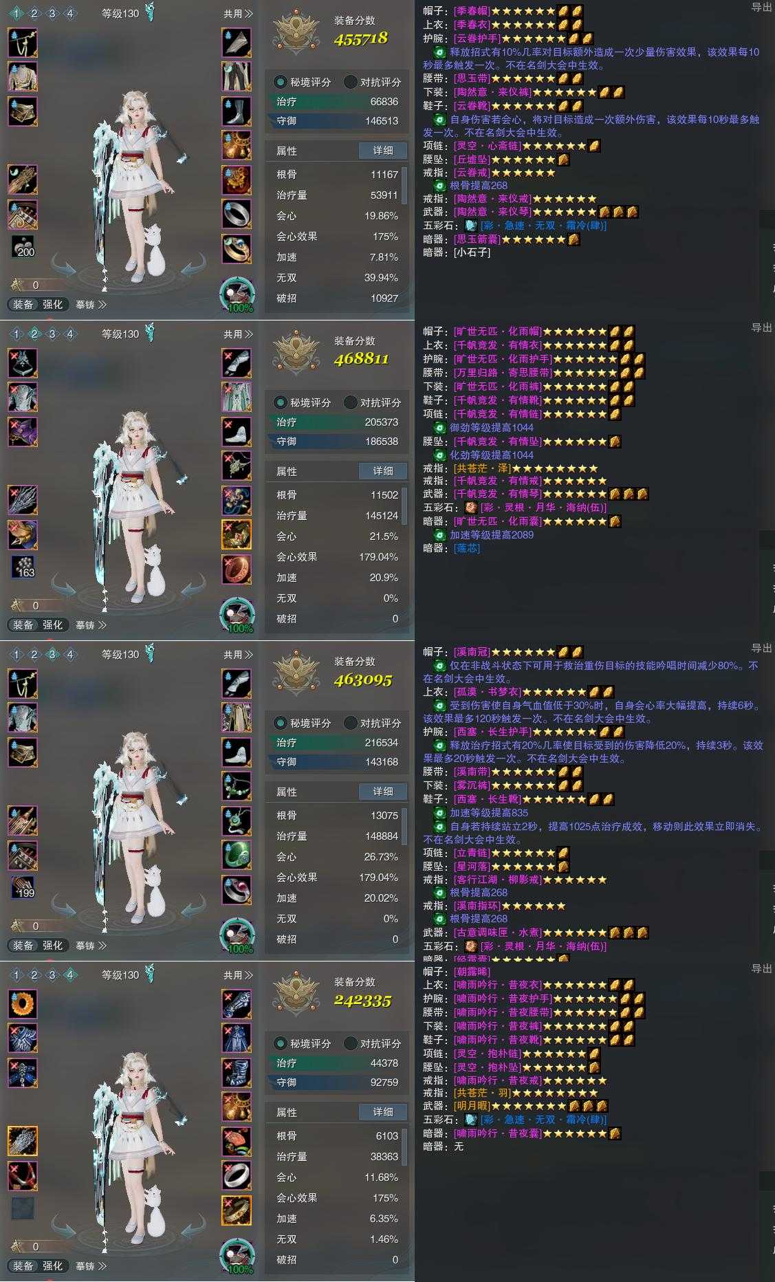 【装备】130级,莫问PVE455718,相知PVE468811,相知装备三463095,装备四242335