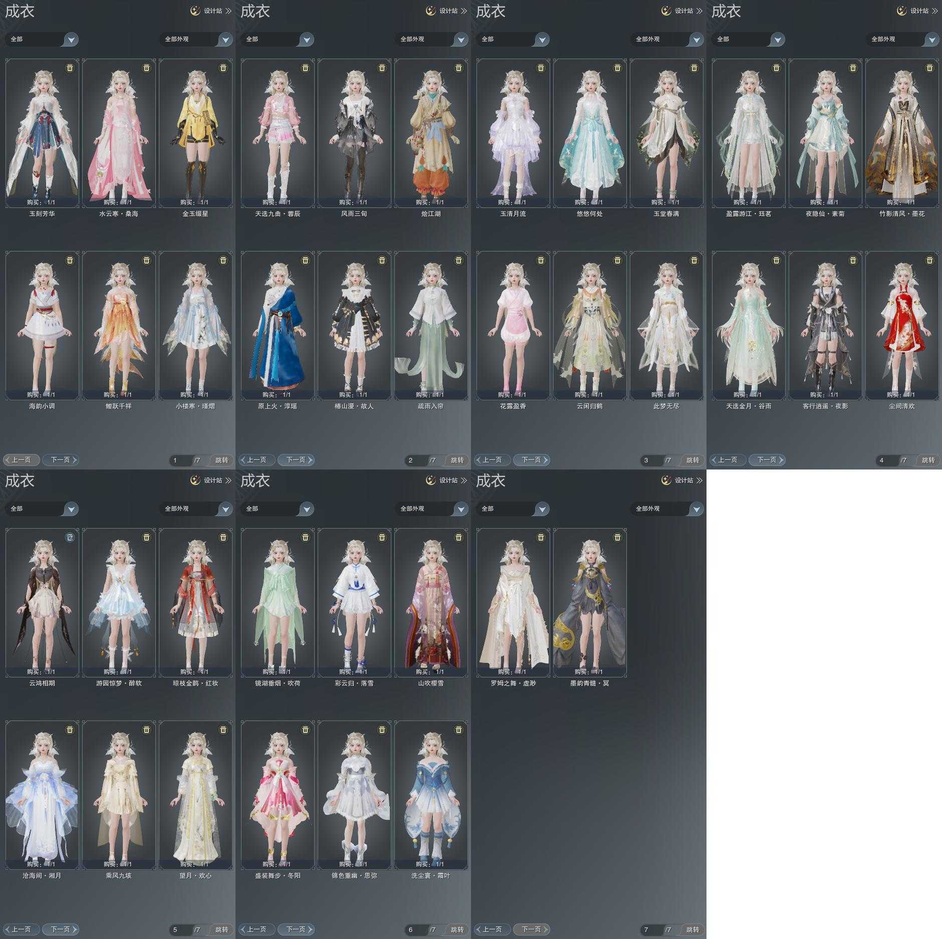 复刻:[望月欢心, 沧海间湘月, 彩云归落雪, 粉蓝机车, 复刻绿二娃, 五期福袋成衣, 夜隐仙素菊]