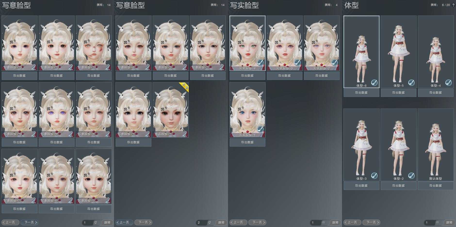【捏脸】写意脸型14个,写实脸型4个,体型6个