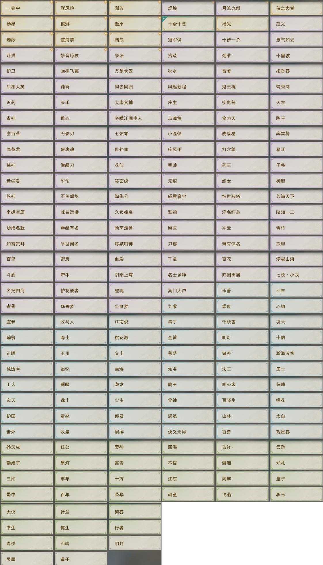 【奇珍】67个[枫林酒, 红衣歌, 归乡路, 胜负局, 孩童书, 清茗经, 捉妖记, 至尊宝, 石敢当, 稚子心]