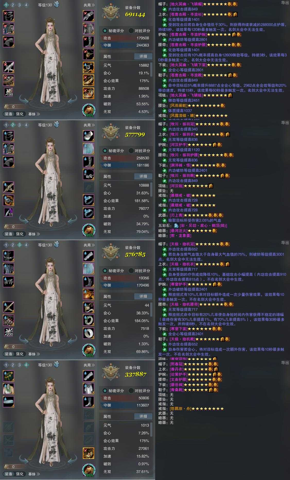【装备】130级,天罗诡道PVP691144,天罗诡道PVE577799,惊羽诀PVE576785,装备四337887