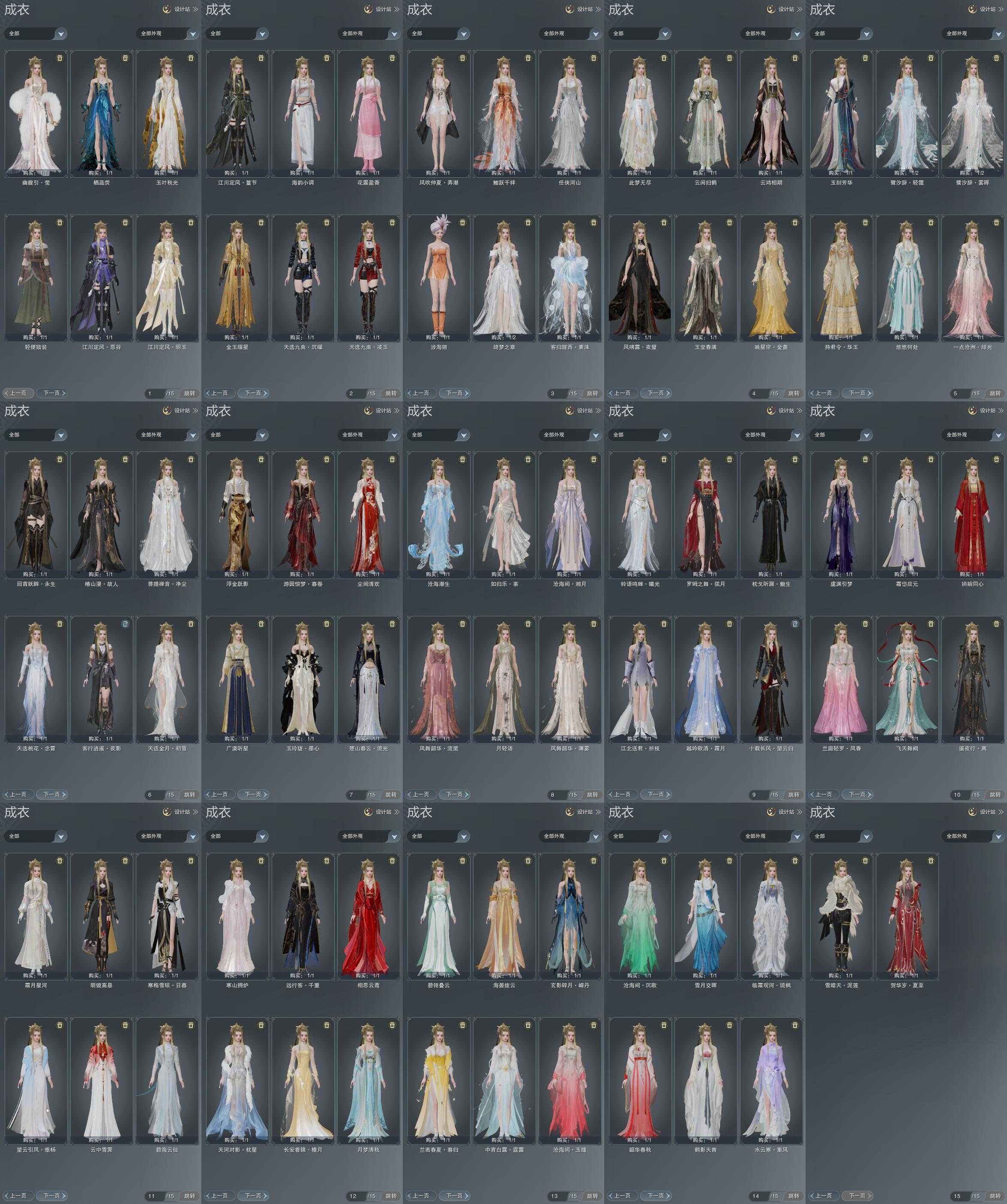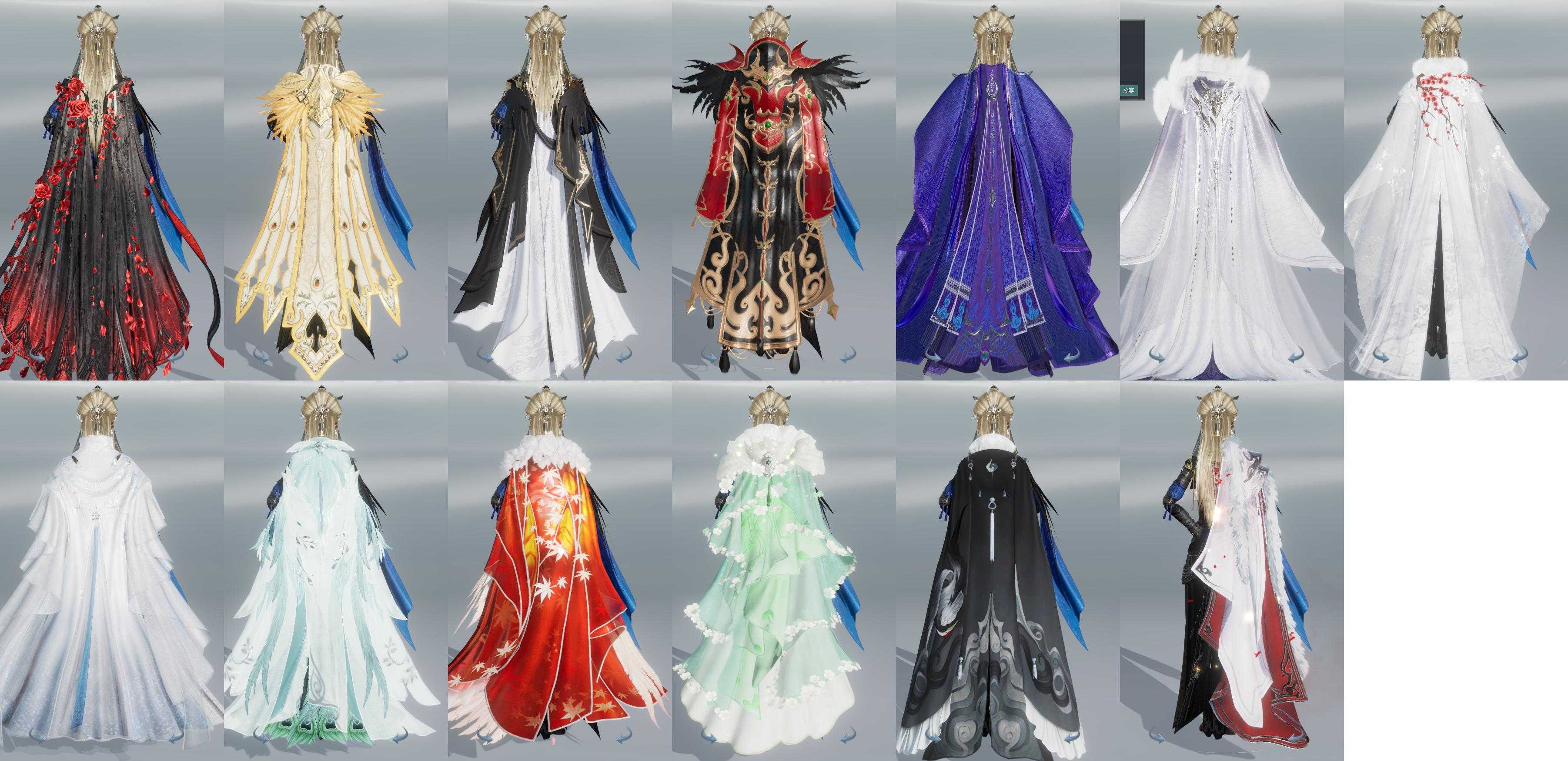 限时限量:[明镜高悬, 富婆套, 水云寒重风, 兰庭凤香, 海韵小调, 望云垂杨, 十三万资历衣, 中宵霆露, 兰若暮归, 寒梅日暮, 黄长安, 烟花套, 黑枕戈, 楚山流光, 十二周年工作服, 客行逍遥夜影, 十三周年成衣, 十四周年工作服, 云闲归鹤]