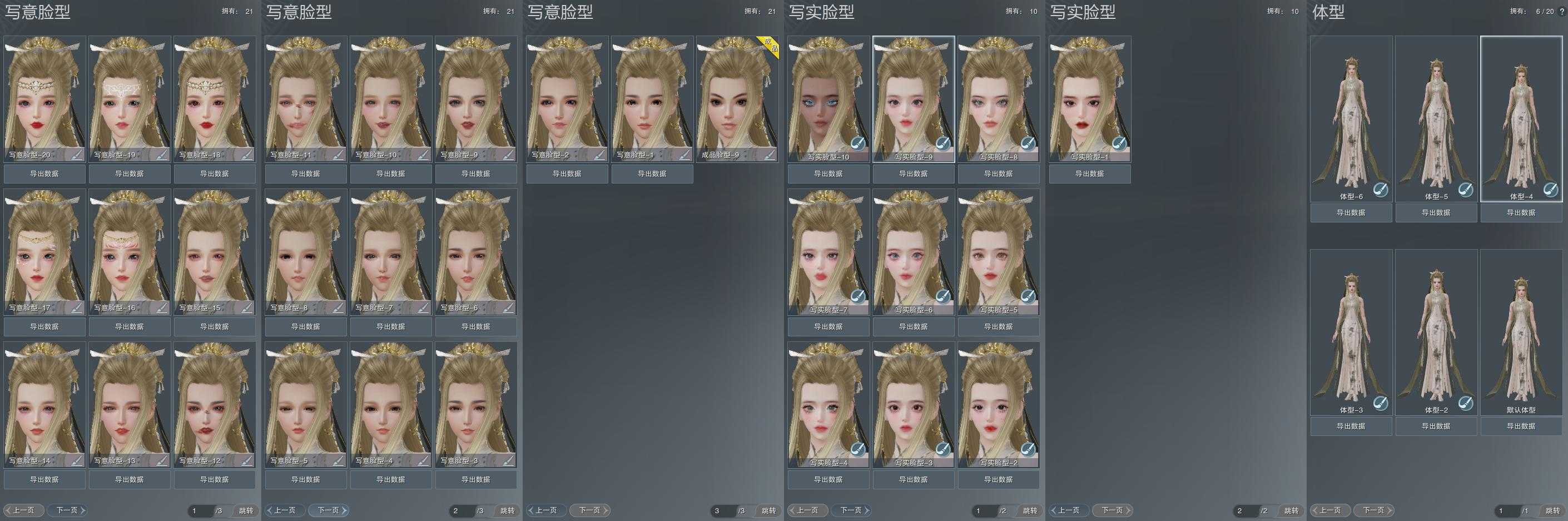 【捏脸】写意脸型21个,写实脸型10个,体型6个