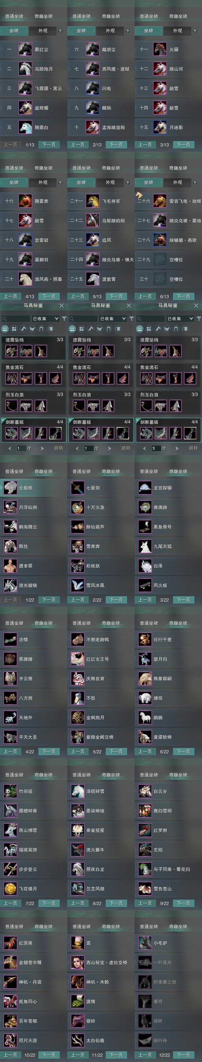 【坐骑】28个[踏炎横天, 踏炎霸地, 西风瘦逐狱, 飞毛将军, 飞霞骠黑云, 乌蹄抱月, 霸红尘, 雷首飞电驰辉, 乌鬃踏焰驹]