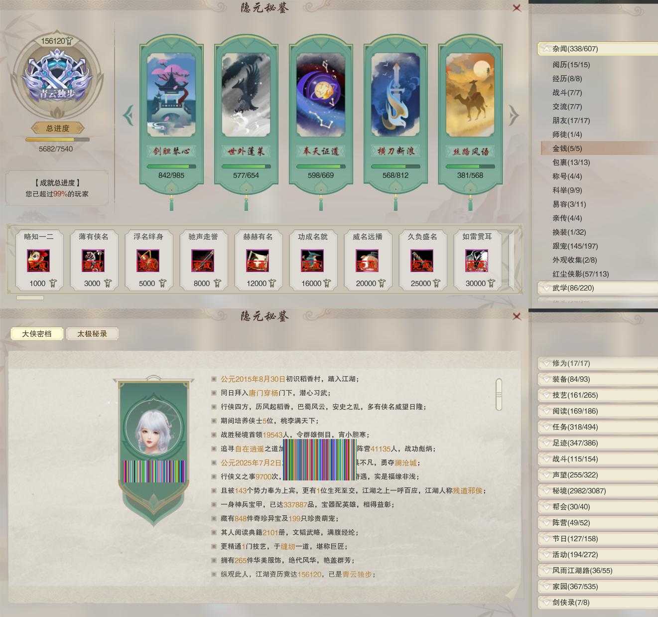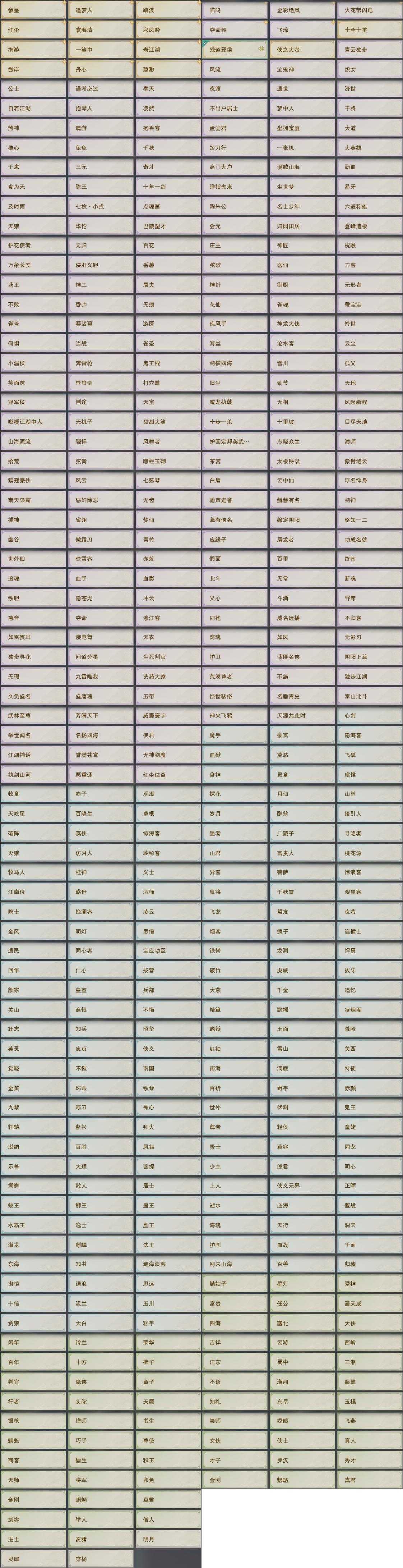 【奇遇】35个[白日梦, 天涯无归, 劝学记, 雪山恩仇, 阴阳两界, 平生心愿, 黑白路, 乱世舞姬, 惜往日, 塞外宝驹, 韶华故, 虎啸山林, 护佑苍生, 少年行, 故园风雨, 扶摇九天, 三尺青锋, 舞众生, 清风捕王, 侠行囧途, 寻猫记, 茶馆奇缘, 庆舞良宵, 生死判, 凌云梯, 千秋铸, 度人心, 空谷回音, 旧宴承欢, 泛天河]