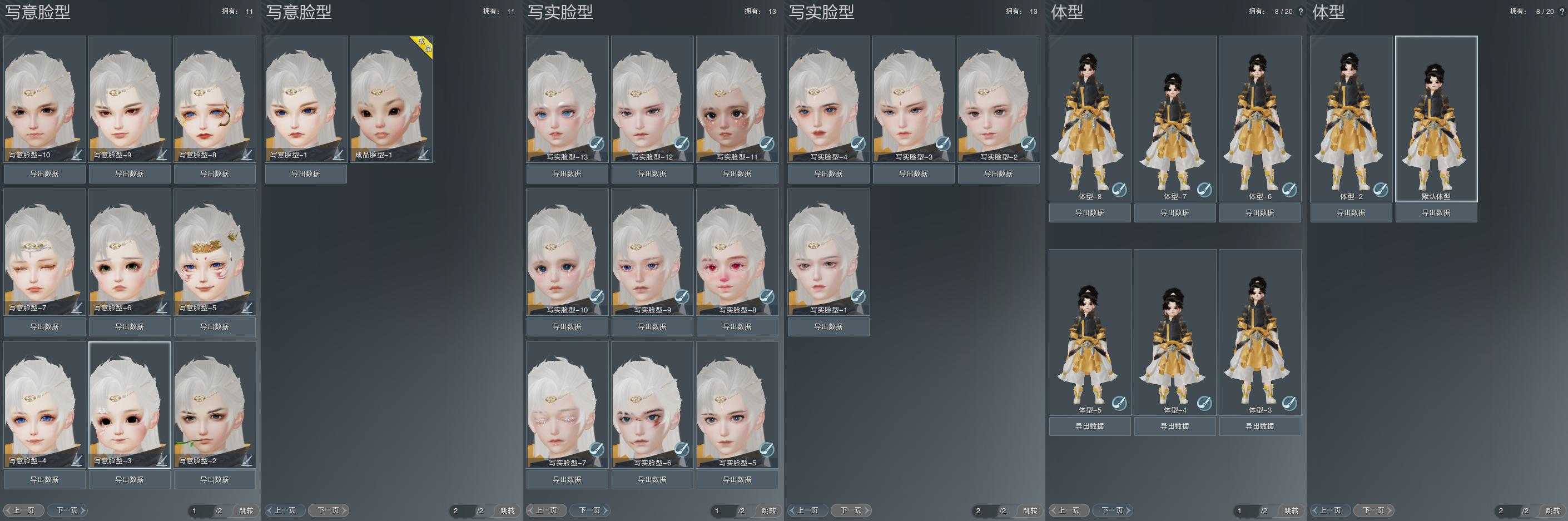 【捏脸】写意脸型11个,写实脸型13个,体型8个