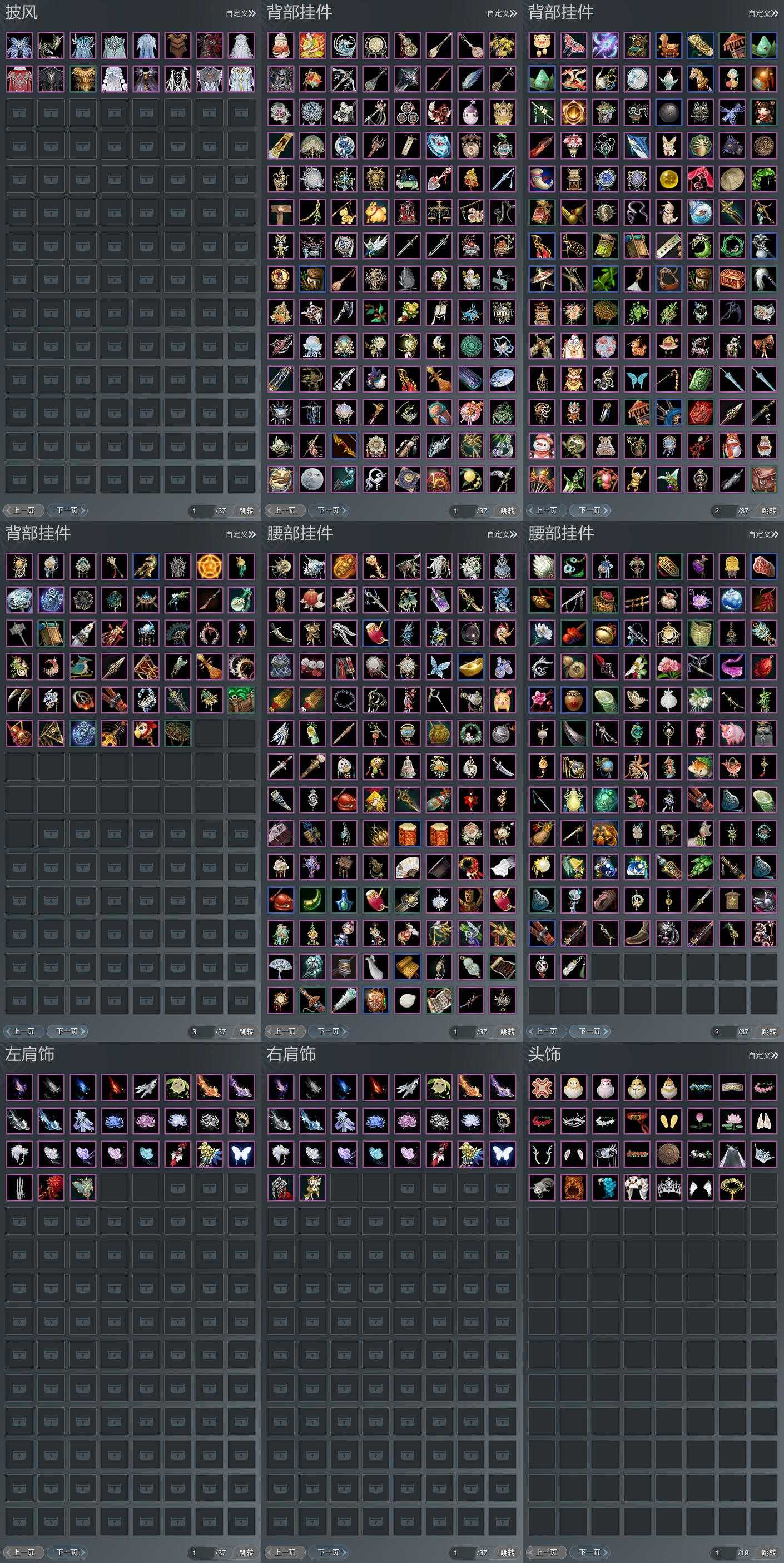 【披风】16个,[7W资历披风, 三山披风, 龙盒披风, 苍二盒披风, 二代战令披风, 三豪披风, 白婚纱披风, 空山闲雪, 彩绡海披风, 云麒赫奕, 晓梦披风]