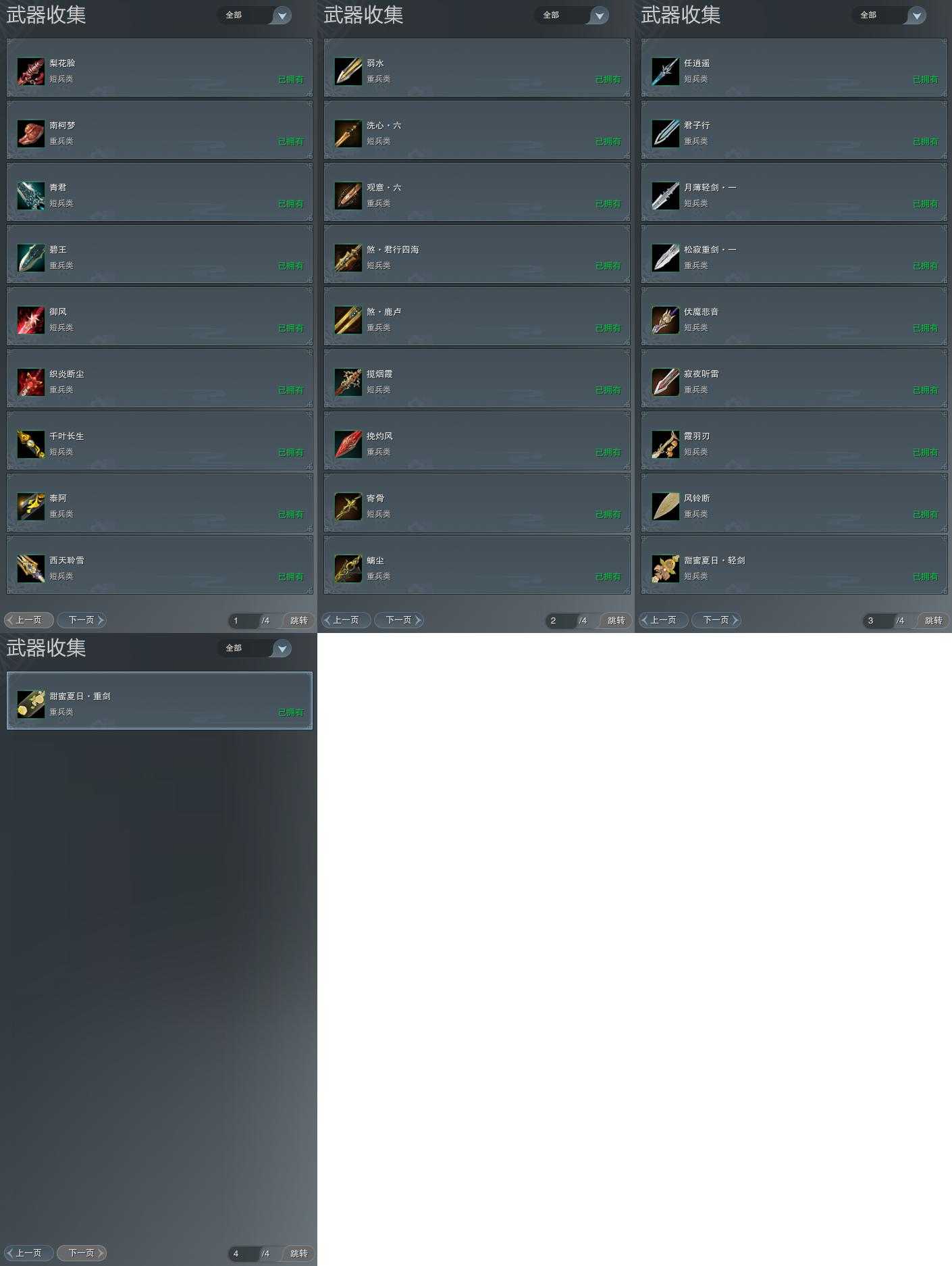 【拓印】5页外观收集,28武器拓印,拓印70CW青君,拓印70CW碧王,拓印80CW御风,拓印80CW织炎,拓印90CW千叶,拓印90CW泰阿,拓印95CW西天聆雪,拓印95CW弱水,拓印100奇遇CW煞·君行四海,拓印100奇遇CW煞·鹿卢,拓印120CW寄骨,拓印130CW伏魔悲音,拓印130CW寂夜听雷