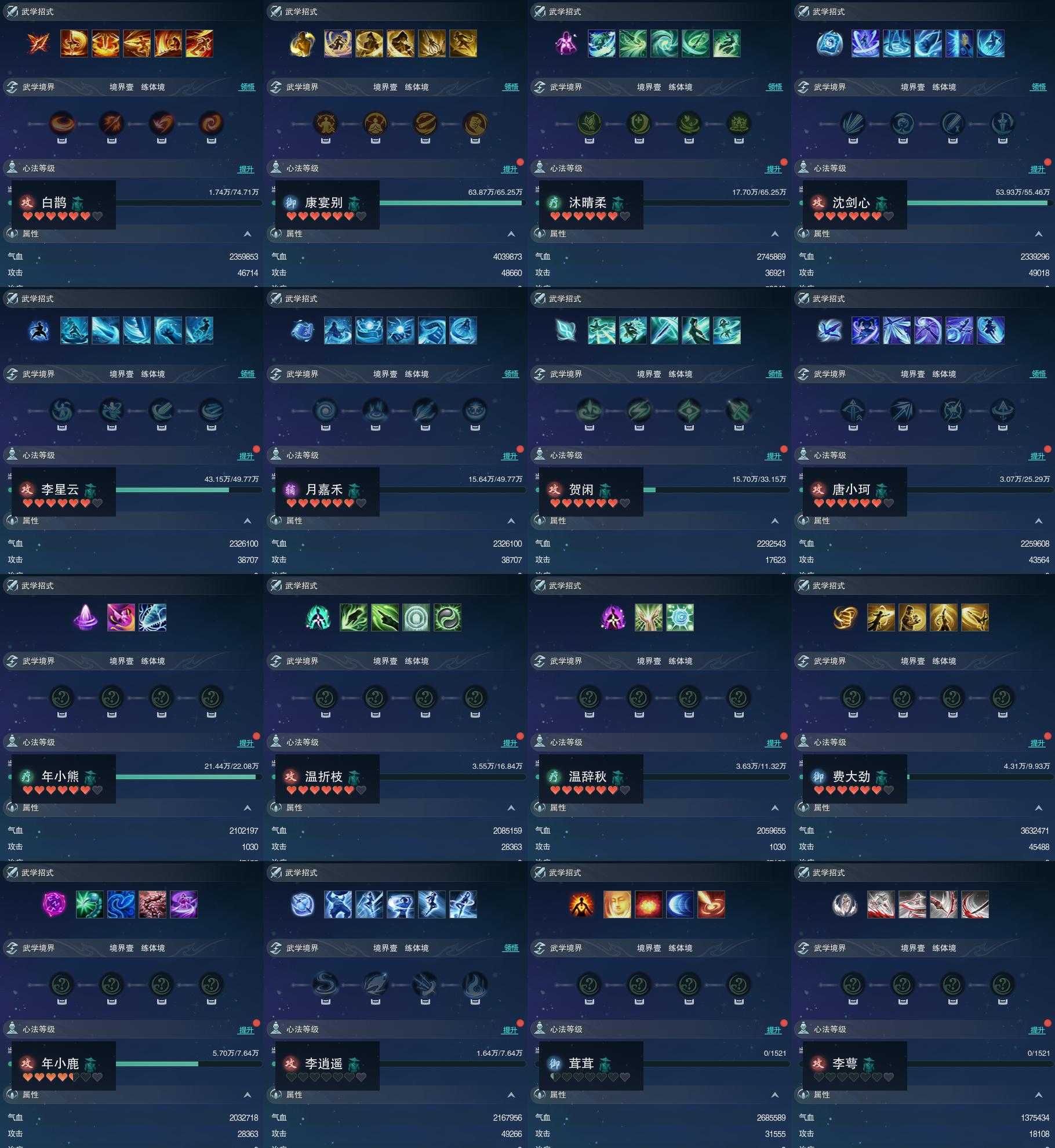 【同伴】白鹊志82级境界壹,康宴别81级境界壹,沐晴柔81级境界壹,沈剑心81级境界壹,李星云79级境界壹,月嘉禾79级境界壹,贺闲志76级境界壹,唐小珂74级境界壹,年小熊73级境界壹,温折枝71级境界壹,温辞秋68级境界壹,费大劲67级境界壹,年小鹿65级境界壹,李逍遥65级境界壹,茸茸志1级境界壹,李萼志1级境界壹