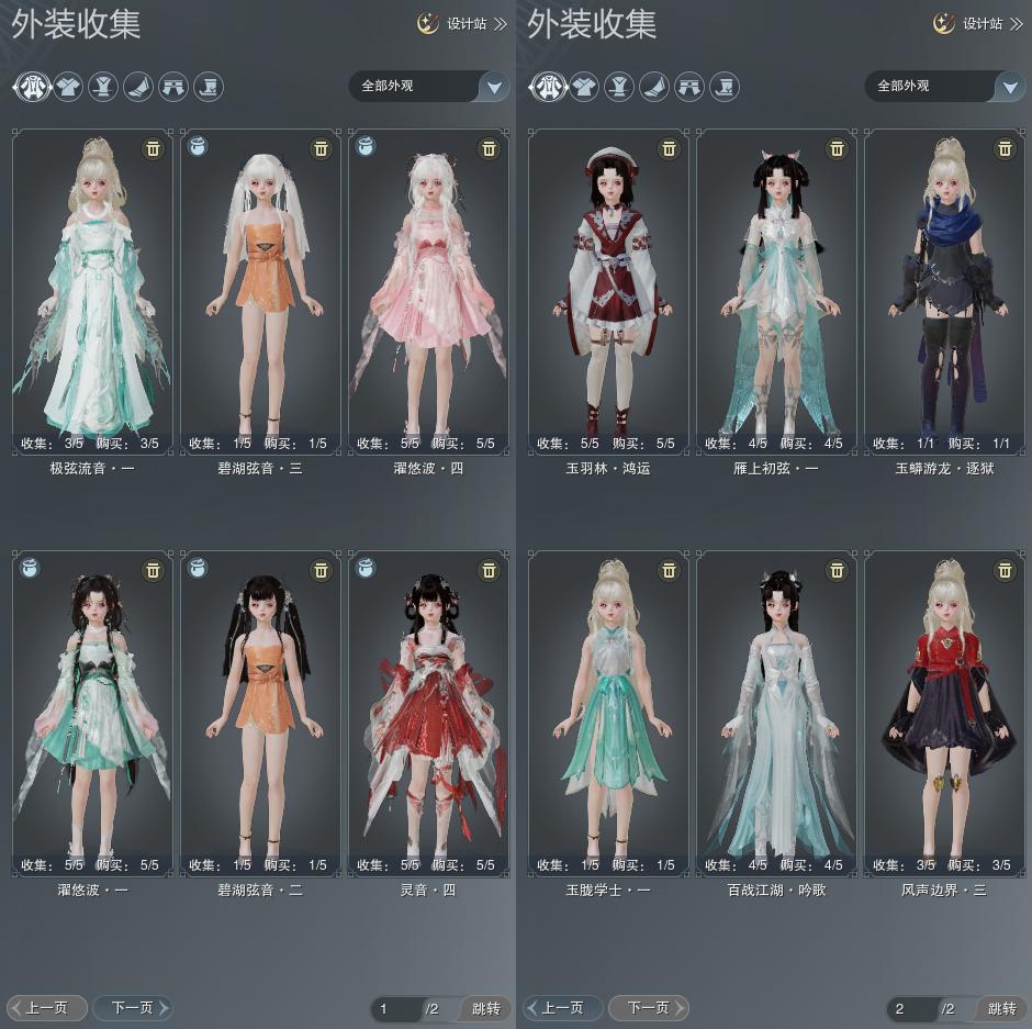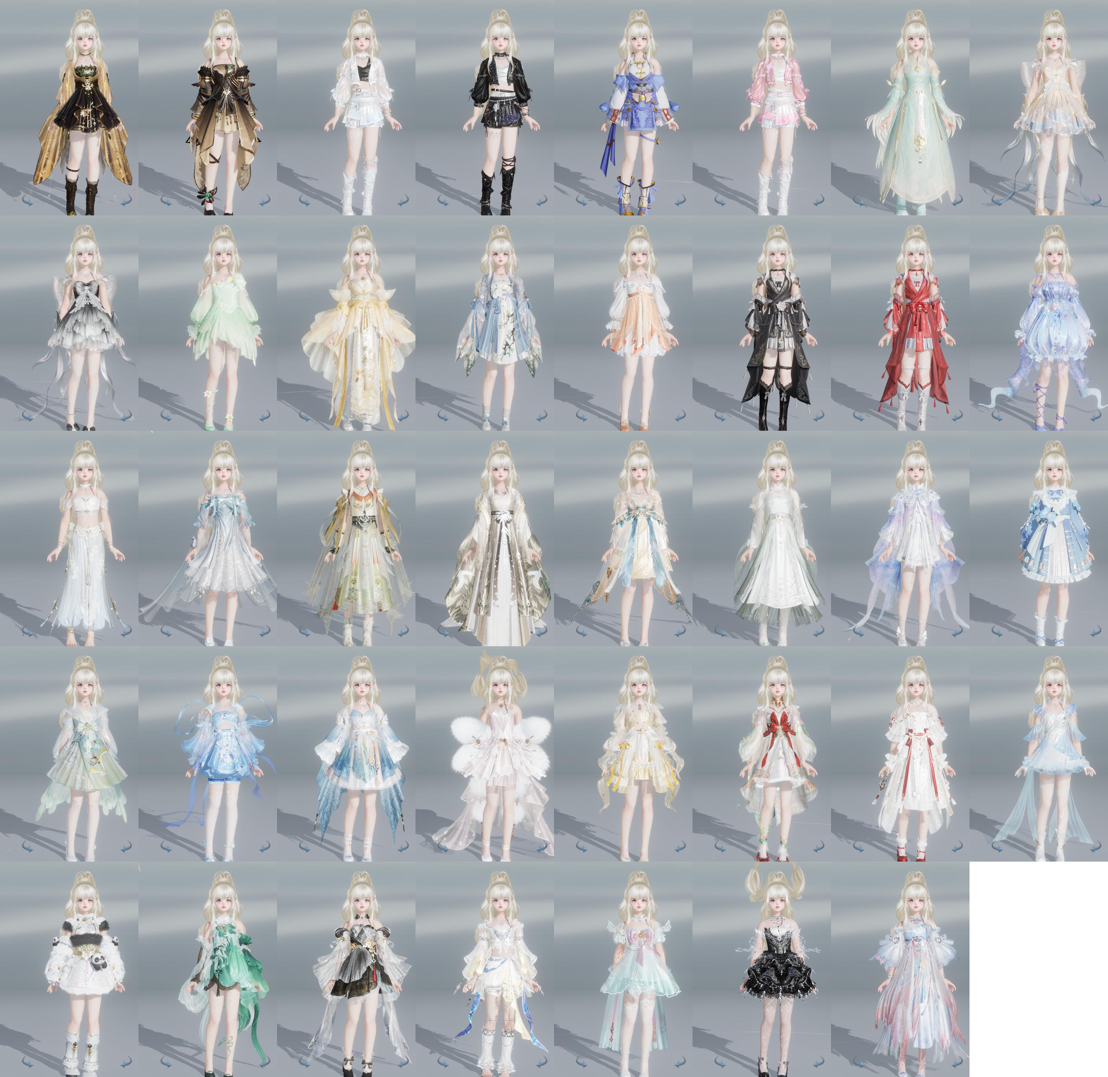 复刻:[风华韵金, 白机车, 黑机车, 粉蓝机车, 复刻绿二娃, 天选黄无色, 天选黑无色, 复刻绿不欺, 沧海间烟暮, 五期福袋成衣, 河汉绯玉, 折花留芳坠绯]