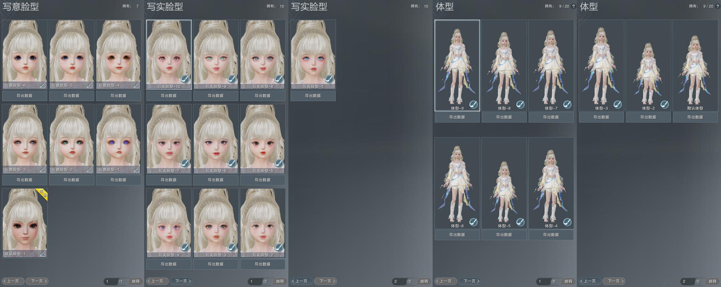 【捏脸】写意脸型7个,写实脸型10个,体型9个