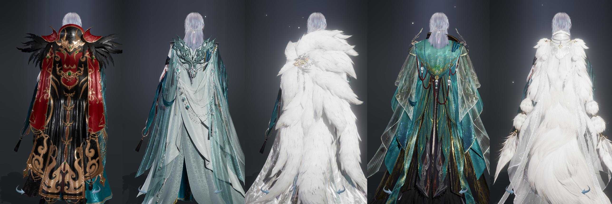【披风】5个,[7W资历披风, 药盒披风, 白狐裘, 灵狐披风, 云麒赫奕]