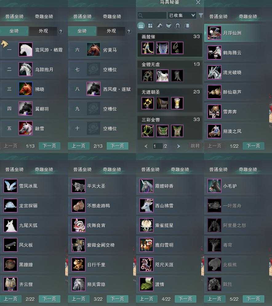 【奇趣】23个[雪凤冰凰, 西山拂雪, 霞醴碎香, 朔关雷隐, 乘雀揽星, 鹿车, 咫尺天涯, 渡船, 毛驴, 日行千里]