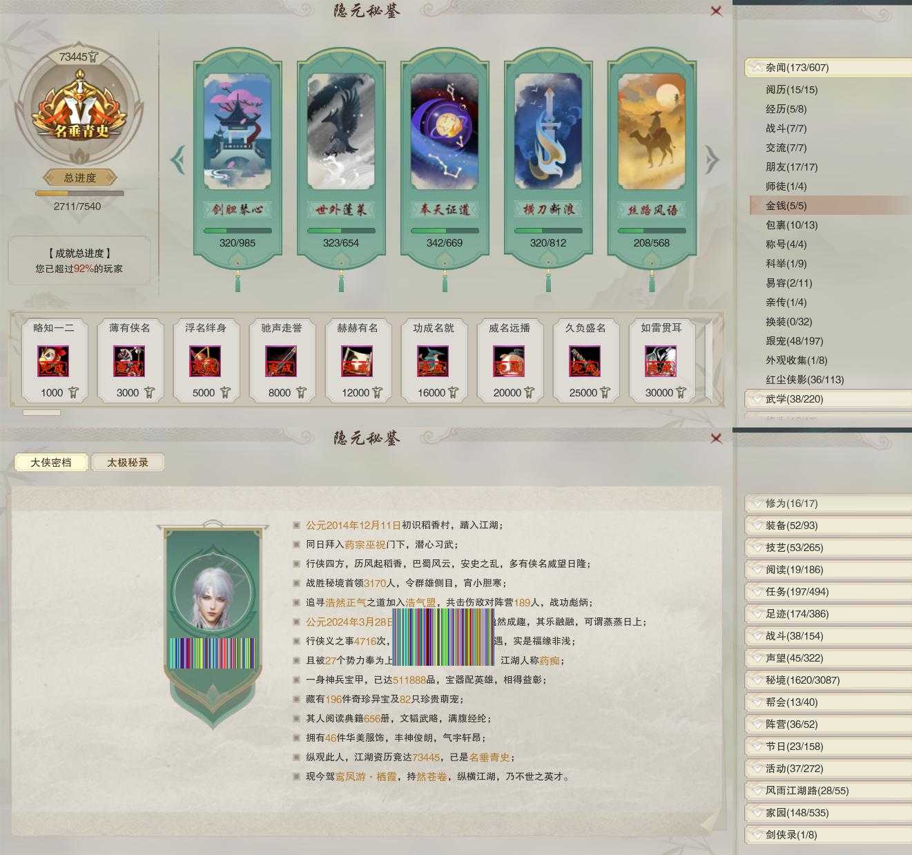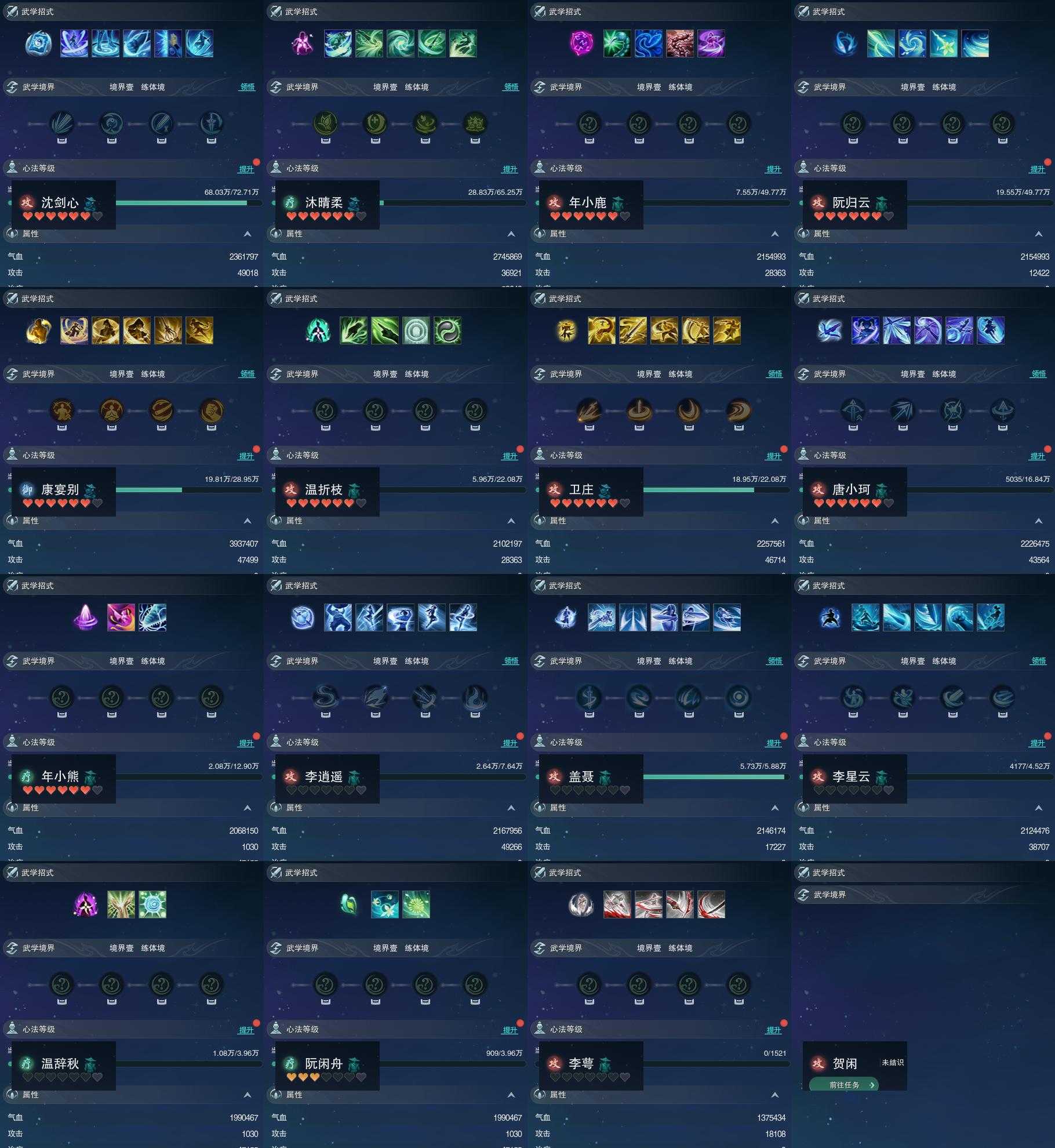 【同伴】沈剑心83级境界壹,沐晴柔81级境界壹,年小鹿79级境界壹,阮归云79级境界壹,康宴别75级境界壹,温折枝73级境界壹,卫庄意73级境界壹,唐小珂71级境界壹,年小熊69级境界壹,李逍遥65级境界壹,盖聂志63级境界壹,李星云61级境界壹,温辞秋60级境界壹,阮闲舟60级境界壹,李萼志1级境界壹,贺闲级