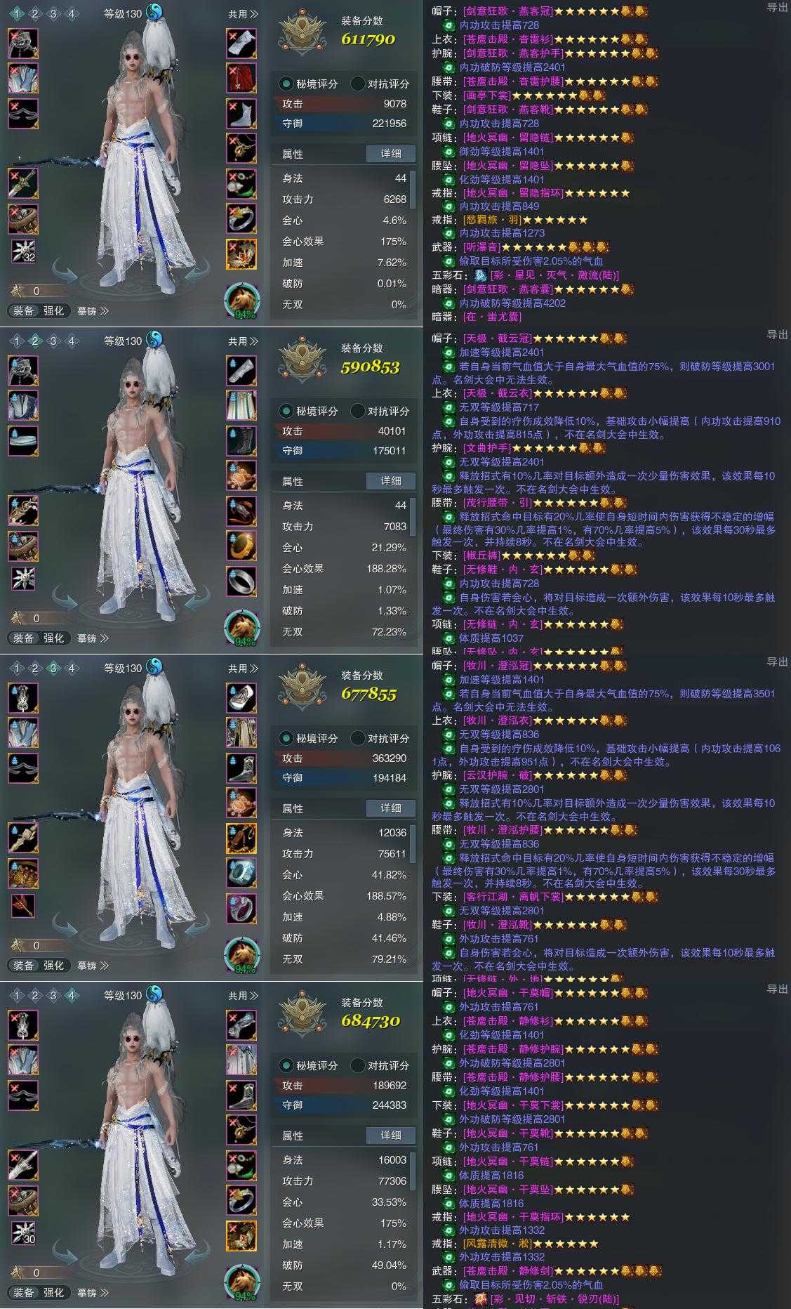 【装备】130级,紫霞功PVP611790,紫霞功PVE590853,太虚剑意PVE677855,太虚剑意PVP684730